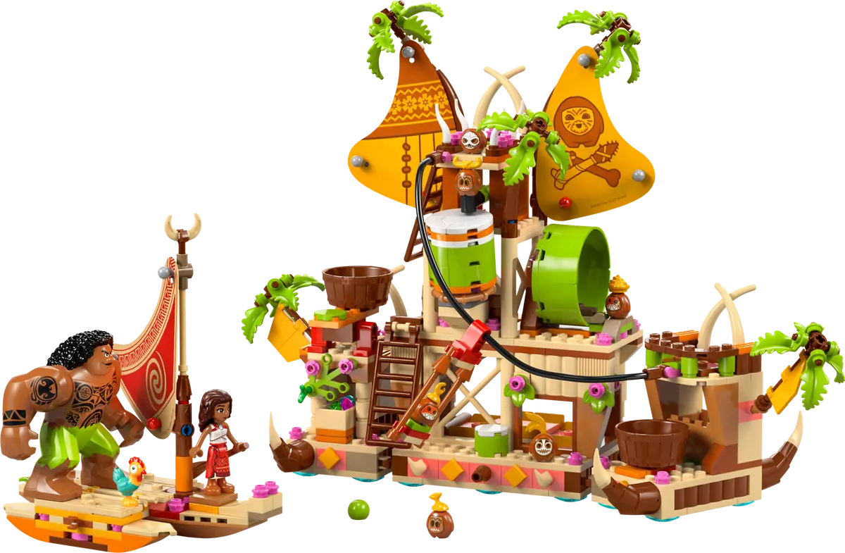 A játékhoz 9 LEGO ǀ Disney karakter tartozik: Vaiana, Maui, Heihei, a csirke, Kotu (a kakamora hős) és 5 kakamora. Az építőkészlet színes és részletgazdag elemei között szerepel egy kókuszdió-katapult, rejtett kincsesláda, dobot, forgó kereket és még sok más elem.