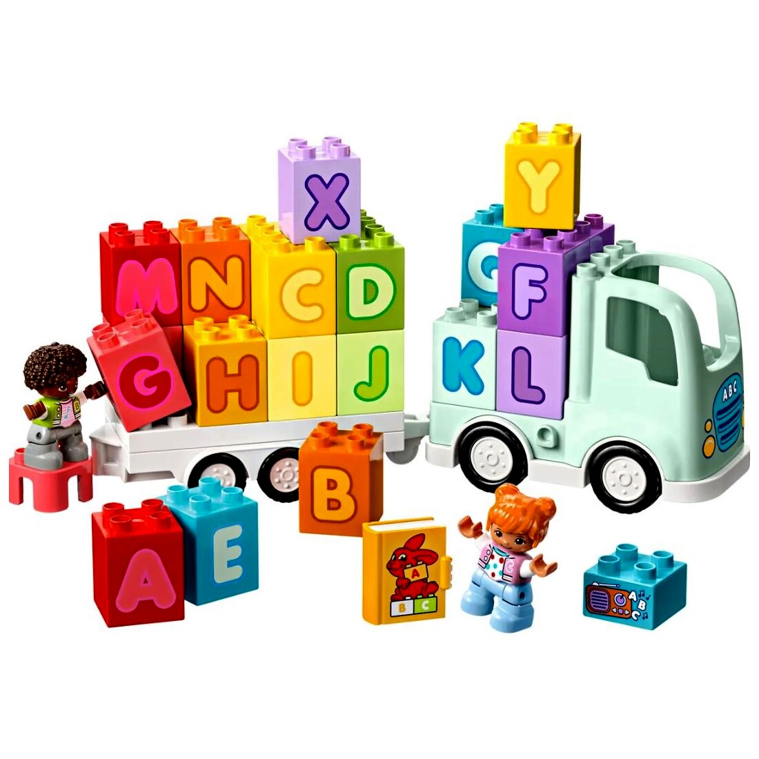 A fantáziadús játékot olyan kiegészítők segítik, mint a LEGO DUPLO ABC játékkönyv-elem és a sztereóelem, amely az ábécé vidám eléneklésére bátorítja a szülőket és a gyermekeket. Ez a fejlesztőjáték arra biztatja a kicsiket, hogy kreatív történeteket találjanak ki, miközben felmásznak a játék teherautó vezetőfülkéjébe és új kalandokra indulnak.