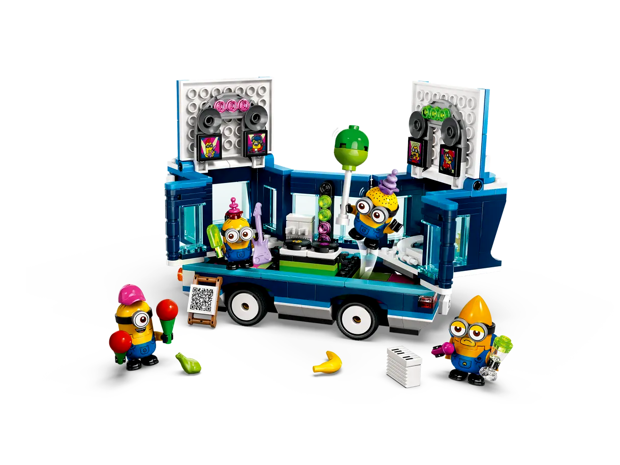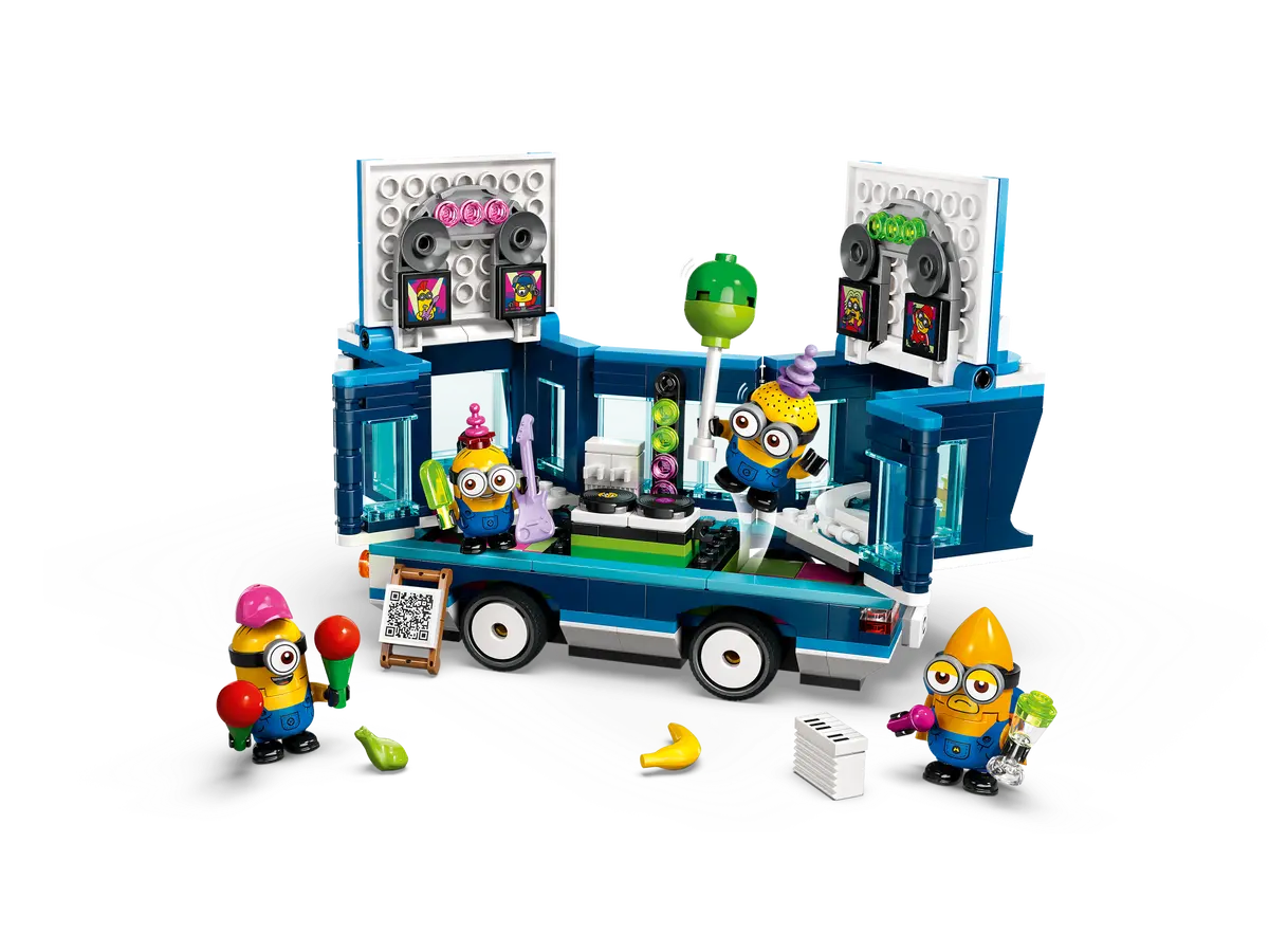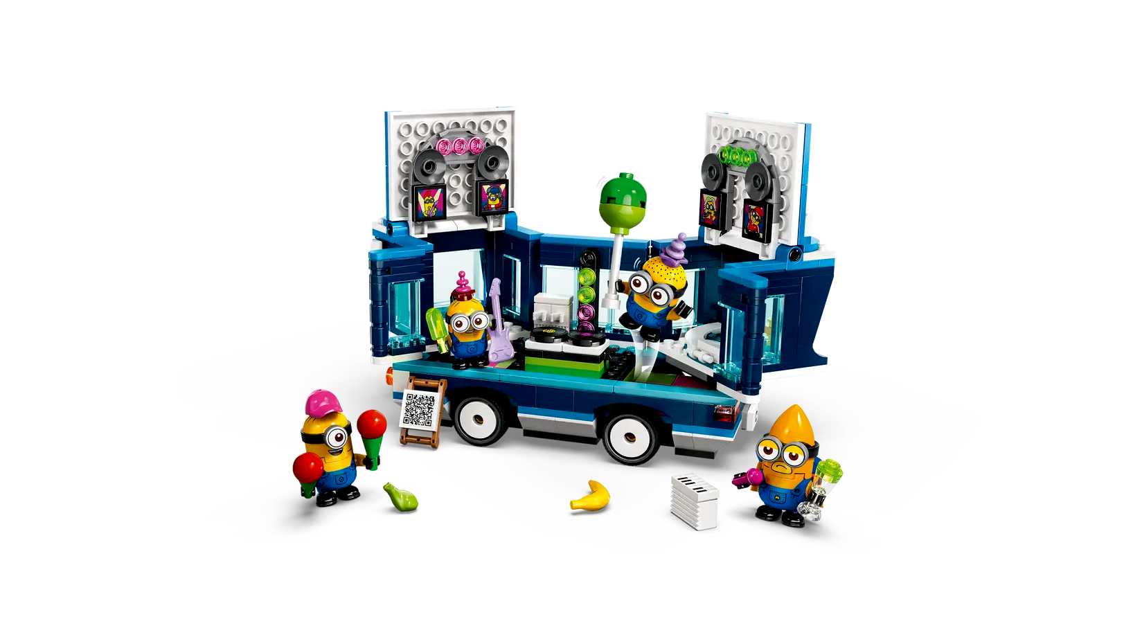 Ajándékozz 2 az 1-ben szórakozást a minyonrajongóknak és azoknak a gyerekeknek, akik imádják a járműveket a LEGO® Gru 4. Minyonok zenés partibusza szettel (75581)! Ez a gyerekeknek készült, kreatív szett tartalmaz egy tologatható játékbuszt, amely felnyitható, hogy felfedezhesd a szuper szórakoztató minyonos partiszettet! Ez egy klassz filmes ajándék 7+ éves fiúknak, lányoknak és az Illumination Gru 4. című film rajongóinak.