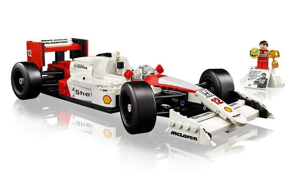 A McLaren MP4/4 replikának működő kormányzása, rudas felfüggesztése, állítható hátsó szárnya, sima gumiabroncsa, tükrei, váltója és részletgazdag v6-os turbófeltöltős motorja van, sőt, egy bemutatóállvány és egy izgalmas statisztikai adatokat tartalmazó információs tábla is tartozik hozzá. Az Ayrton Senna minifigurához egy dobogó stílusú bemutatóállvány és egy információs tábla is tartozik, amelyen Ayrton Senna fényképe és egy tőle származó idézet található.