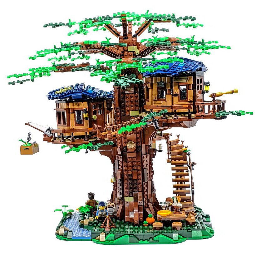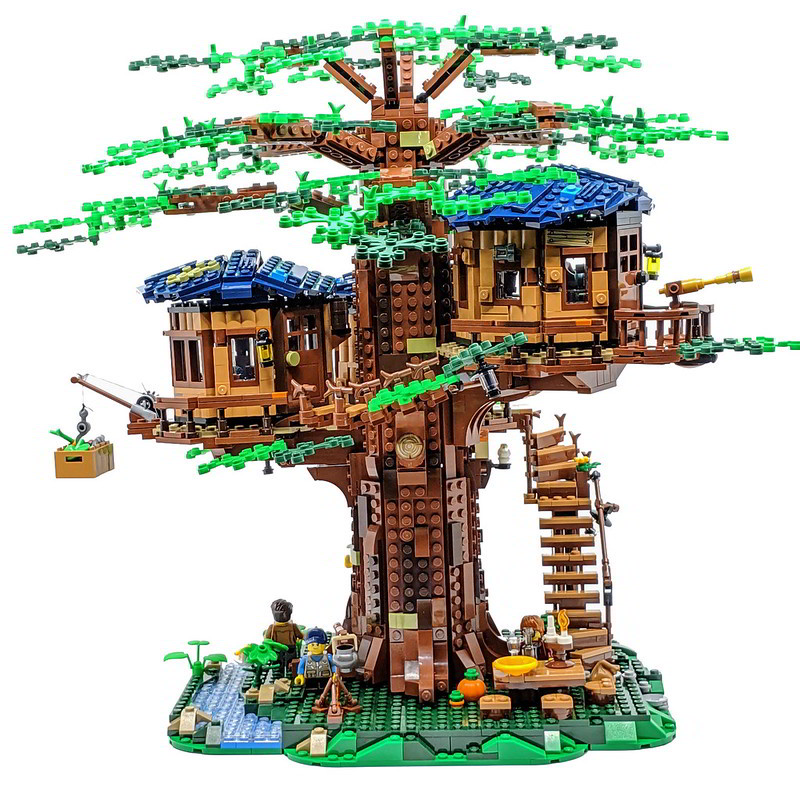 - Ebben a kihívásokkal teli, 3036 elemből álló építőjátékban találsz egy tájkép alaplapot, felcserélhető zöld (nyári), valamint sárga és barna (őszi) levelekkel ellátott fát és egy LEGO® Lombházat 3 kunyhóval — egy nagy hálószobát, fürdőszobát és egy gyerekszobát.