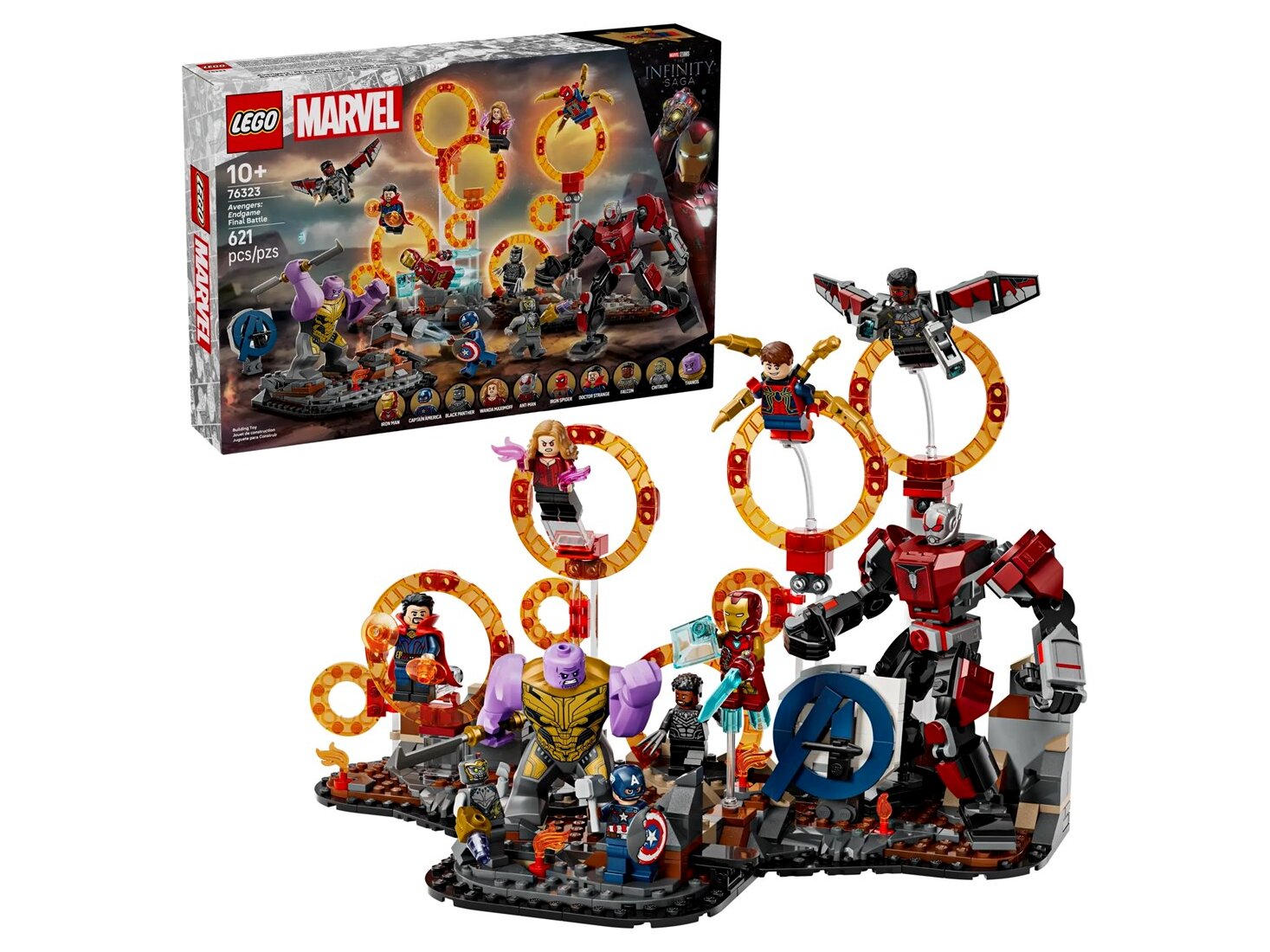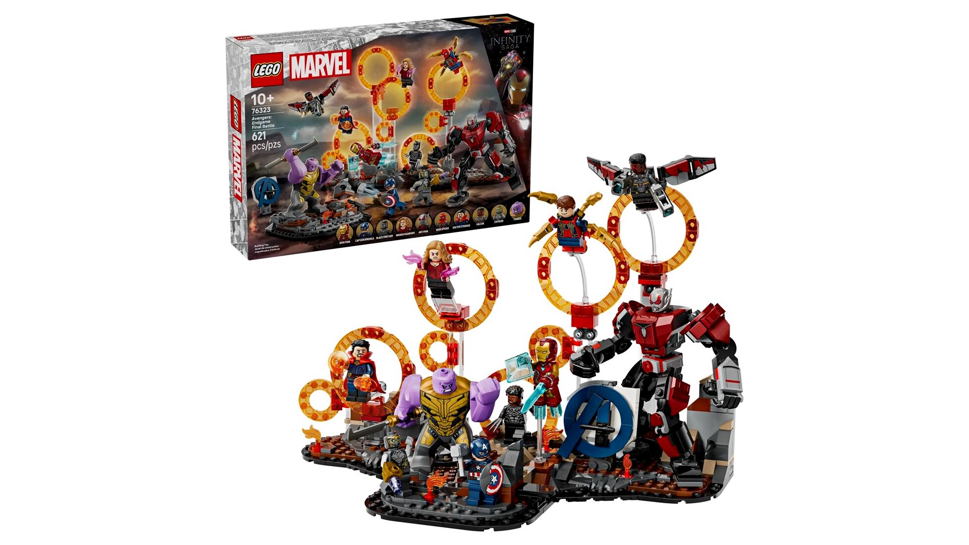 - Hősök varázsportálokon át: Amerika Kapitány, Vasember, Chitauri, Hangya, A Skarlát Boszorkány, Doktor Strange, Vaspók, Fekete Párduc és Sólyom minifigurái mellett Thanos figura és egy csuklós Hangya robot is vár Rád.