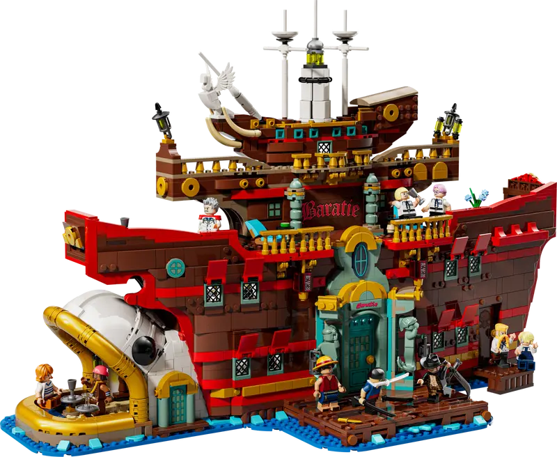 Az építés során lépésről lépésre bontakozik ki az úszó étterem jellegzetes sziluettje, miközben egyre több ismerős részlet és jelenet köszön vissza. Az elkészült modell önálló dísztárgyként is látványos, a minifigurák és a fantáziadús díszletek pedig segítenek életre kelteni a ONE PIECE hangulatát – akár egyetlen pillantással.