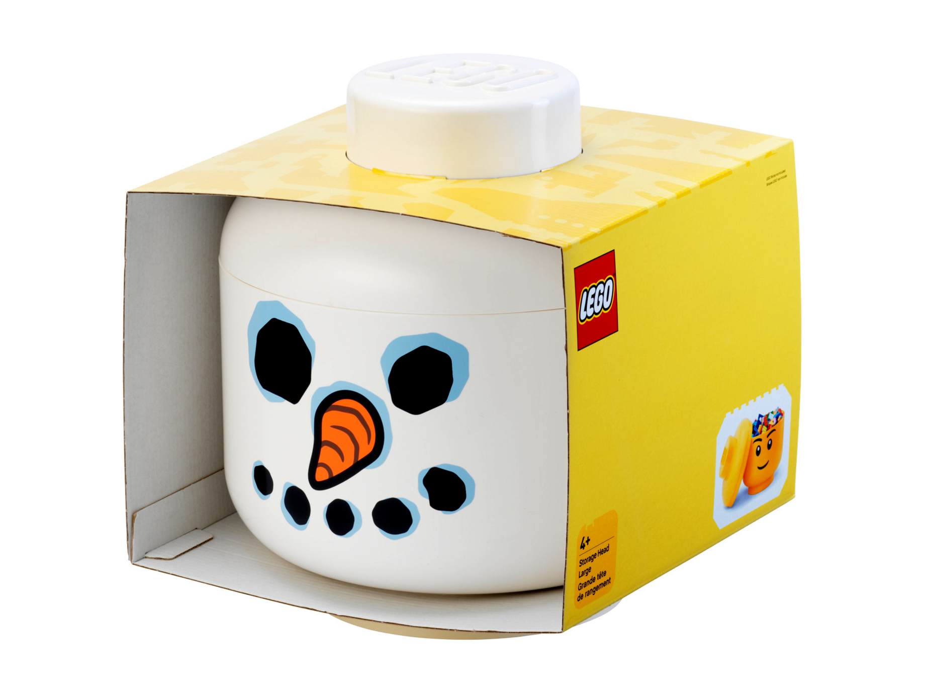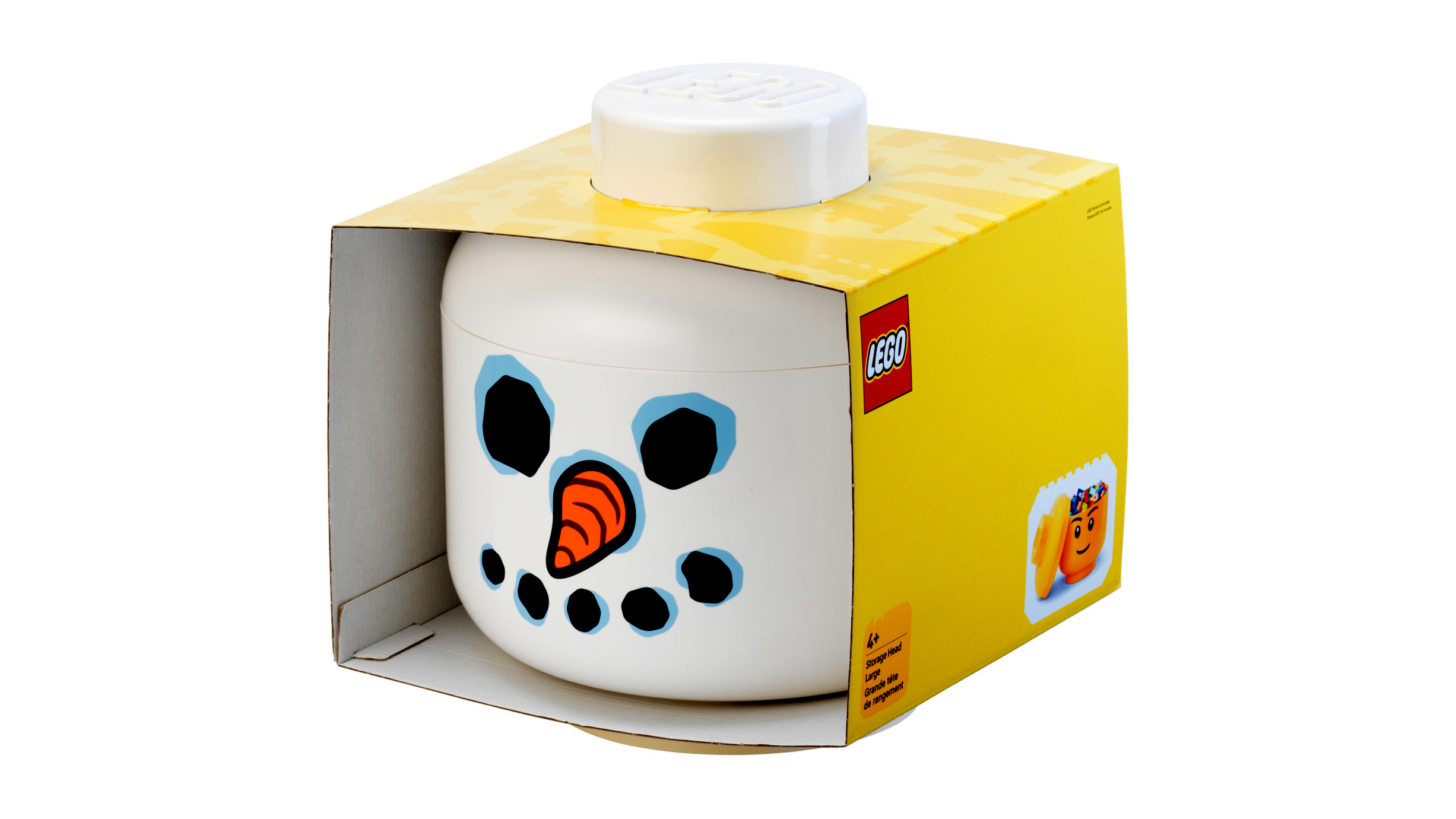 A hóember fej formájú tároló az ismert LEGO minifigura fej felnagyított, téli kiadású változata. A letisztult, fehér szín és a kedves arc garantáltan magára vonja a figyelmet, legyen szó gyerekszobáról, nappaliról vagy akár irodáról. A vidám megjelenés ösztönzi a gyerekeket a rendrakásra, hiszen élmény „etetni” a hóember fejét a játékokkal.
