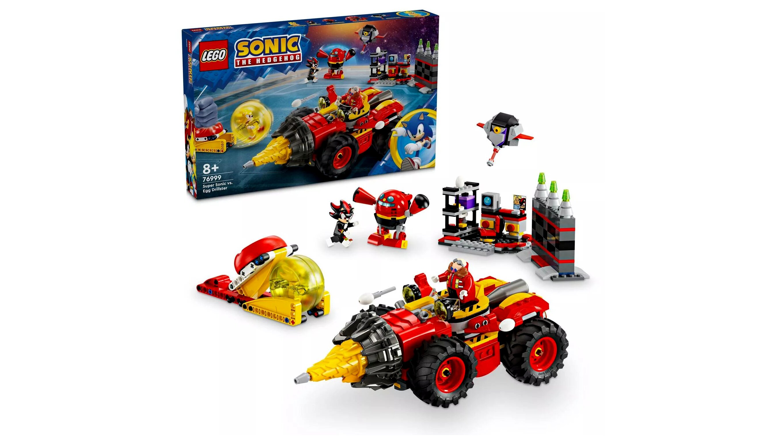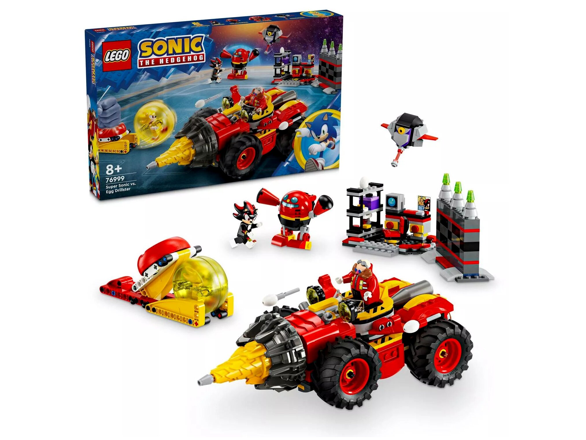 Ez a vagány Sonic-játékkészlet örömet okoz a rajongóknak, hiszen Shadow és Super Sonic figuráival játszhatnak el történeteket: versenyezhetnek, hogy legyőzzék Dr. Eggman erőteljes Egg Drillsterét és gonosztevőit, elpusztíthatják a laborját, vagy megmenthetik a foglyul ejtett állatbarátokat.