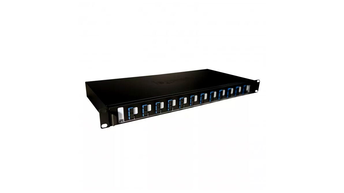 - 12x SC duplex csatlakozó: Olyan csatlakozók, amelyek lehetővé teszik a 24 száloptikai kábel rugalmas bekötését és használatát.