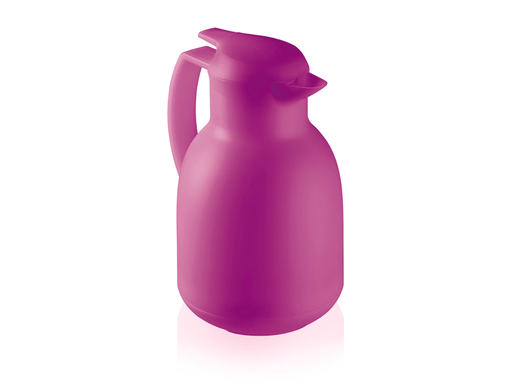 A szaténlila színű szigetelő kancsó modern, letisztult vonalaival és fagyos hatású, elegáns felületével azonnal magára vonja a tekintetet. Letisztult formája tökéletesen illeszkedik irodai konyhába, tárgyalóasztalra vagy otthoni nappaliba, miközben praktikus kialakítása hosszú időn át gondoskodik a kávé vagy tea ideális hőmérsékletéről.