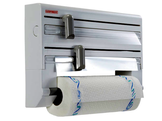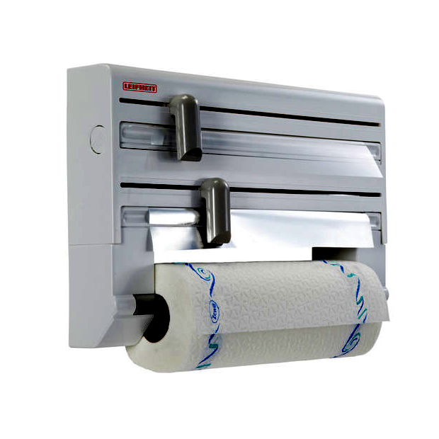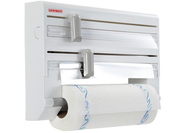 Húzz meg, vágja le és kész – a Parat fali tekercstartó speciális borotvaéles pengéivel tisztán és precízen vágja el az alufóliát és az átlátszó fóliát. Nincs több felesleges turkálás a fiókban, nincs több ferde, szakadozott tépés és nincs több keresgélés az átlátszó fólián, mert nem találjuk a végét. Vágás után a fóliavégek elég messze kiemelkednek a tekercstartóból ahhoz, hogy következő alkalommal fáradság nélkül ragadhassuk meg és húzhassuk ki. A borotvaéles pengék észrevétlenek maradnak az ergonómiailag kialakított vágórésben anélkül, hogy balesetveszélyesek lennének. A Parat fali tekercstartó helyet ad az alu- és átlátszó fóliának. A harmadik tartóra helyezhető a papírtörlő. Az egyszerű falraszerelés után gyorsan és kényelmesen lehet feltölteni a fali tekercstartót. Egyszerűen vegye le a tokot, tegye be a tekercseket, és a Leifheit fali tekercstartó máris használatra kész. Minden szokványos méretű tekerccsel használható.