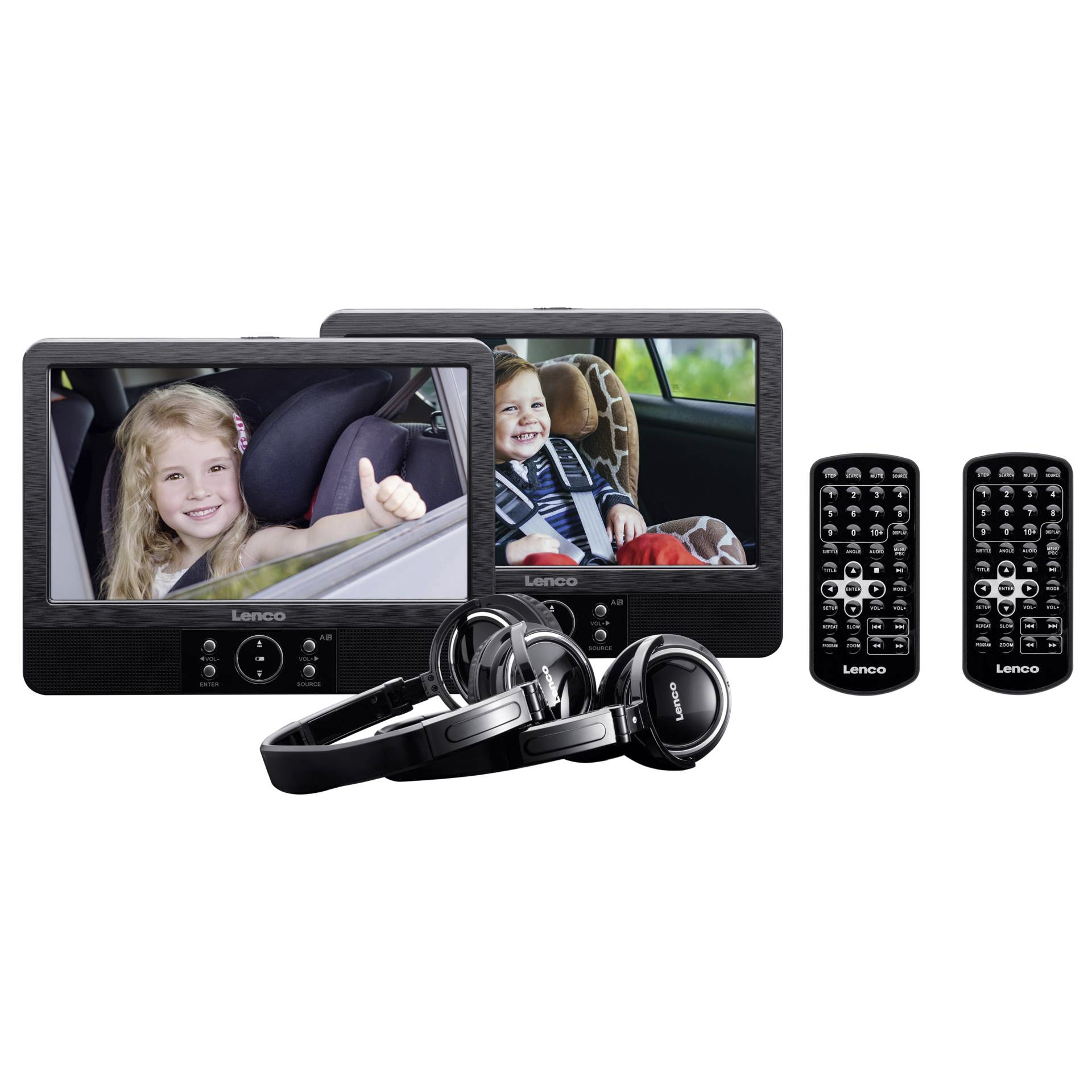 A Lenco DVP-939 2 kompakt hordozható DVD-lejátszó készlete, mindegyik 9 hüvelykes képernyővel.