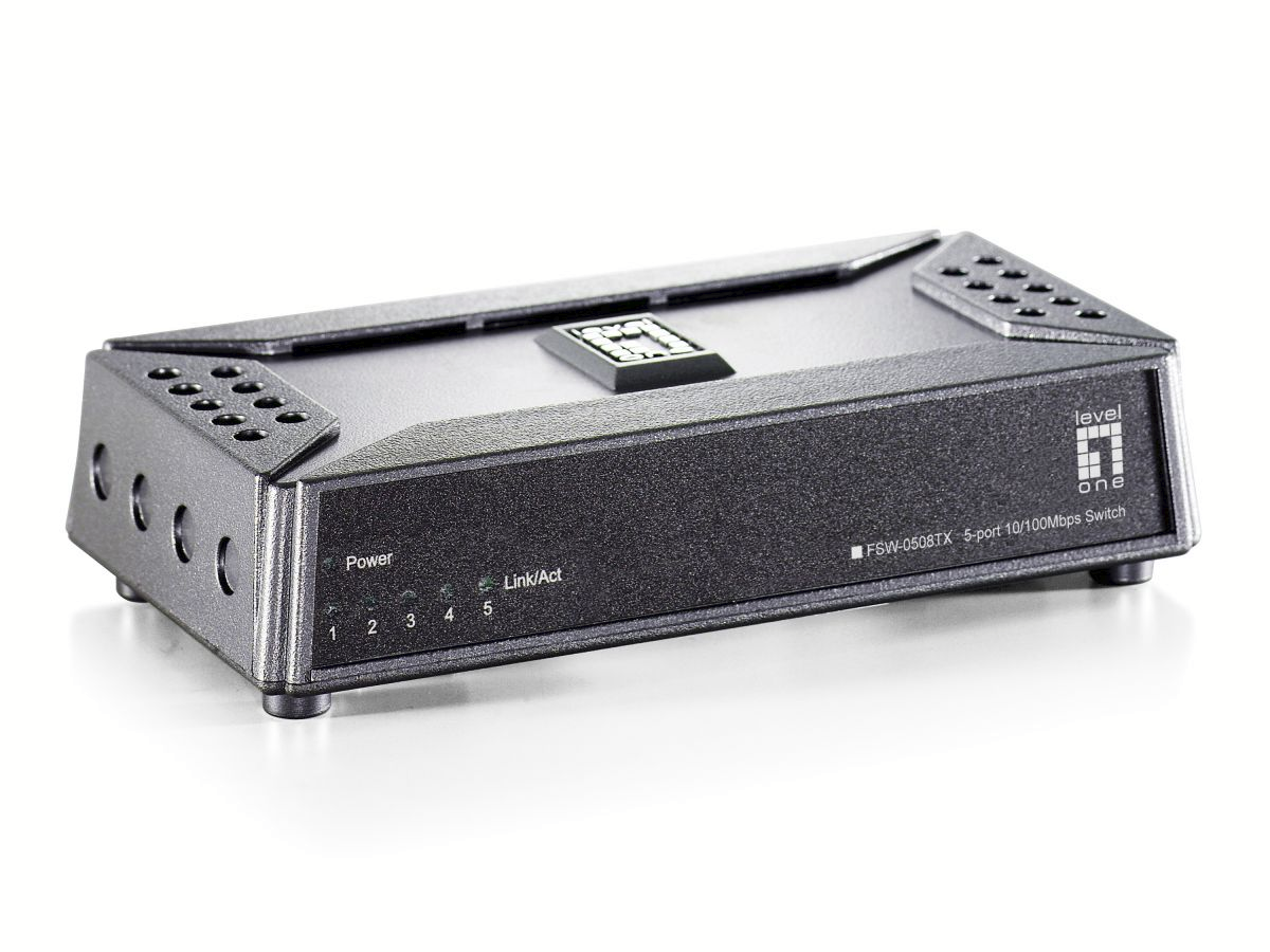 A LevelOne FSW-0508TX 5 portos Fast Ethernet switch a hatékony technológiát egyedi kialakítással ötvözi. Ez a switch 5 10/100Mbps-os porttal rendelkezik, amelyek képesek elérni a legnagyobb, akár 200Mbps-os sávszélességet minden porton, hogy a munkaállomások számára torlódásmentes adatcsövet biztosítson a szerverhez való egyidejű hozzáféréshez. az FSW-0508TX minden portja támogatja az automatikus egyeztetési funkciót, amely automatikusan beállítja a lehető legjobb sávszélességet, amikor egy másik hálózati eszközzel kapcsolatot létesít. A tároló és továbbító kapcsolási mechanizmus biztosítja, hogy ne forduljanak elő hibás csomagok, és maximális hatékonyságot és stabilitást biztosít. Az Auto-MDIX funkcióval ez a switch bővíthető két vagy több switch kaszkádosításával, közvetlen uplinkeléssel, a kábelválasztással járó gondok nélkül.Kicsi és kompakt méretét kifejezetten úgy tervezték, hogy SOHO vagy otthoni használatra, korlátozott helyigényű helyeken is elférjen. A felhasználók a kábelek csatlakoztatásával és a tápellátás bekapcsolásával azonnal hozzáférhetnek minden szükséges funkcióhoz. Az azonnali hibaérzékelés érdekében a kapcsoló LED-ek teljes skálájával van felszerelve, amelyek segítségével nyomon követheti és elháríthatja a hálózaton felmerülő problémákat.