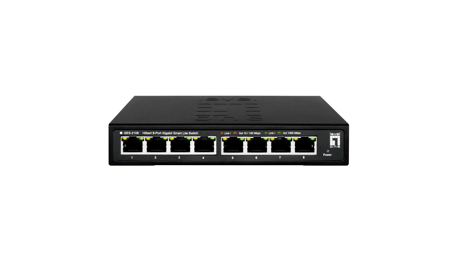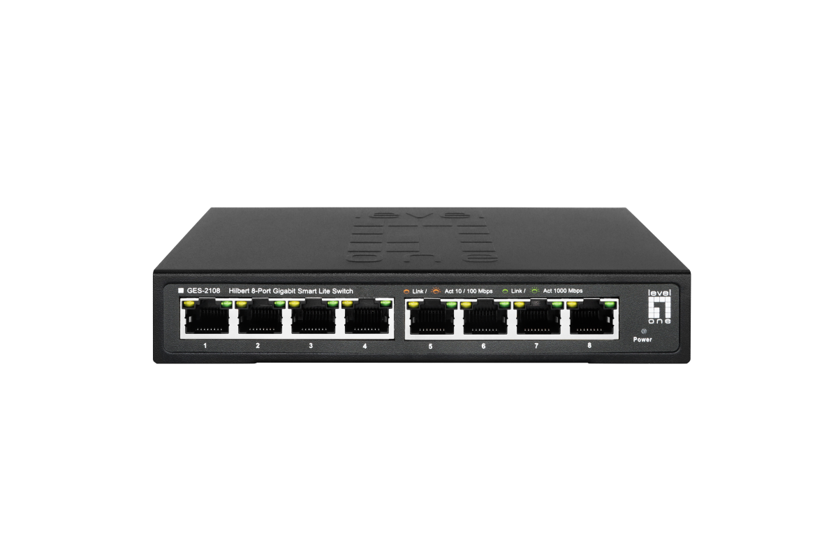 A LevelOne GES-2108 Hilbert gigabites intelligens lite switch egy új generációs Ethernet Switch, amely erőteljes, jobb funkcionalitást és használhatóságot kínál, amely költséghatékony üzleti tevékenységet és Ethernet-szolgáltatásokat rézcsatlakozáson keresztül továbbít. A GES-2108 8 (10M/100M/1G) RJ45 portot szállít. illeszthető a legújabb LevelOne IP lokátorral, a szoftver a legkönnyebben használható kapcsolókereső eszköz, képes keresni az összes Hilbert sorozatú kapcsolót, azonnal tudja az elfelejtett IP-t és egyéb információkat. Kompatibilis a mainstream Windows és Mac operációs rendszerekkel.
