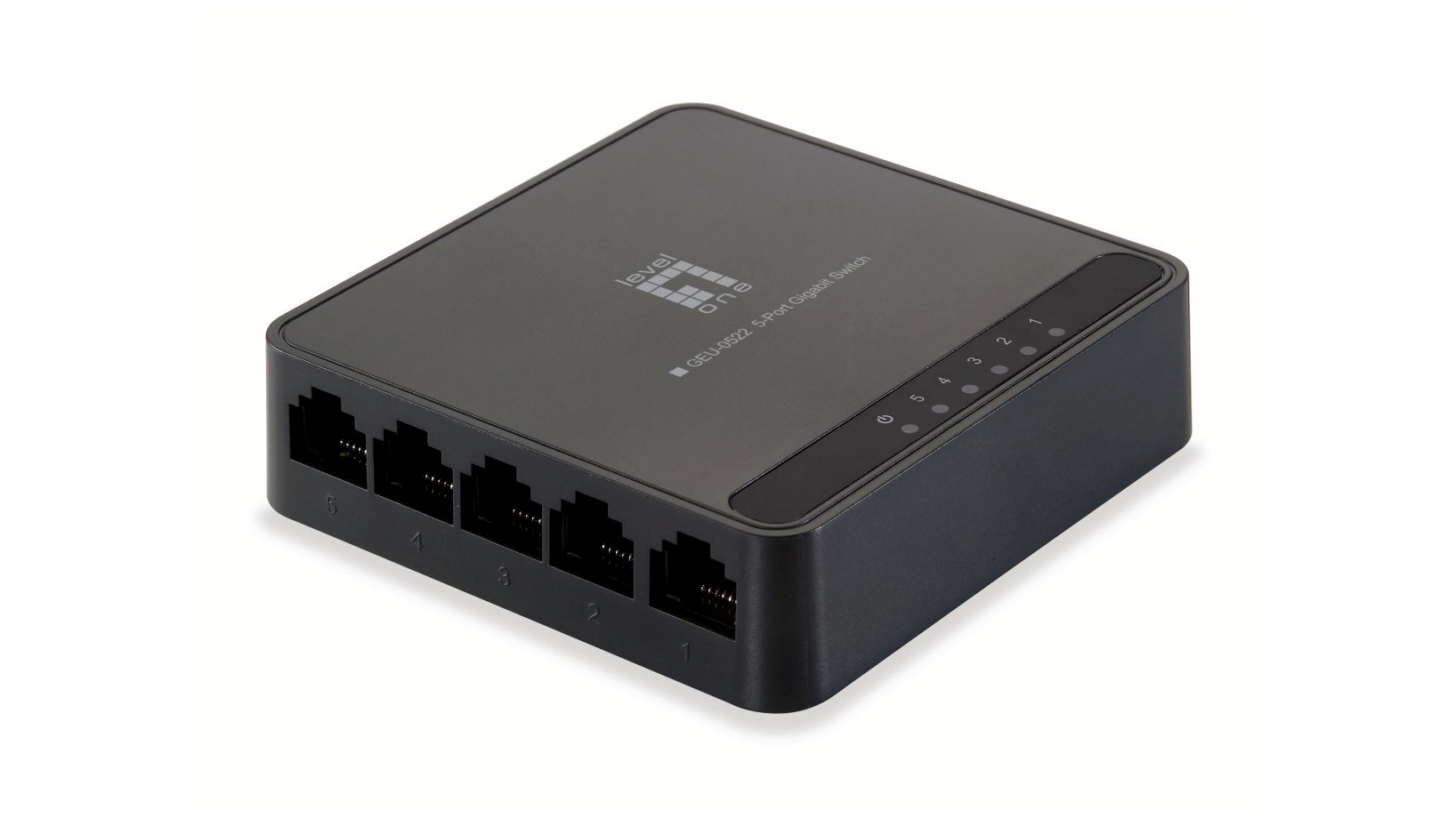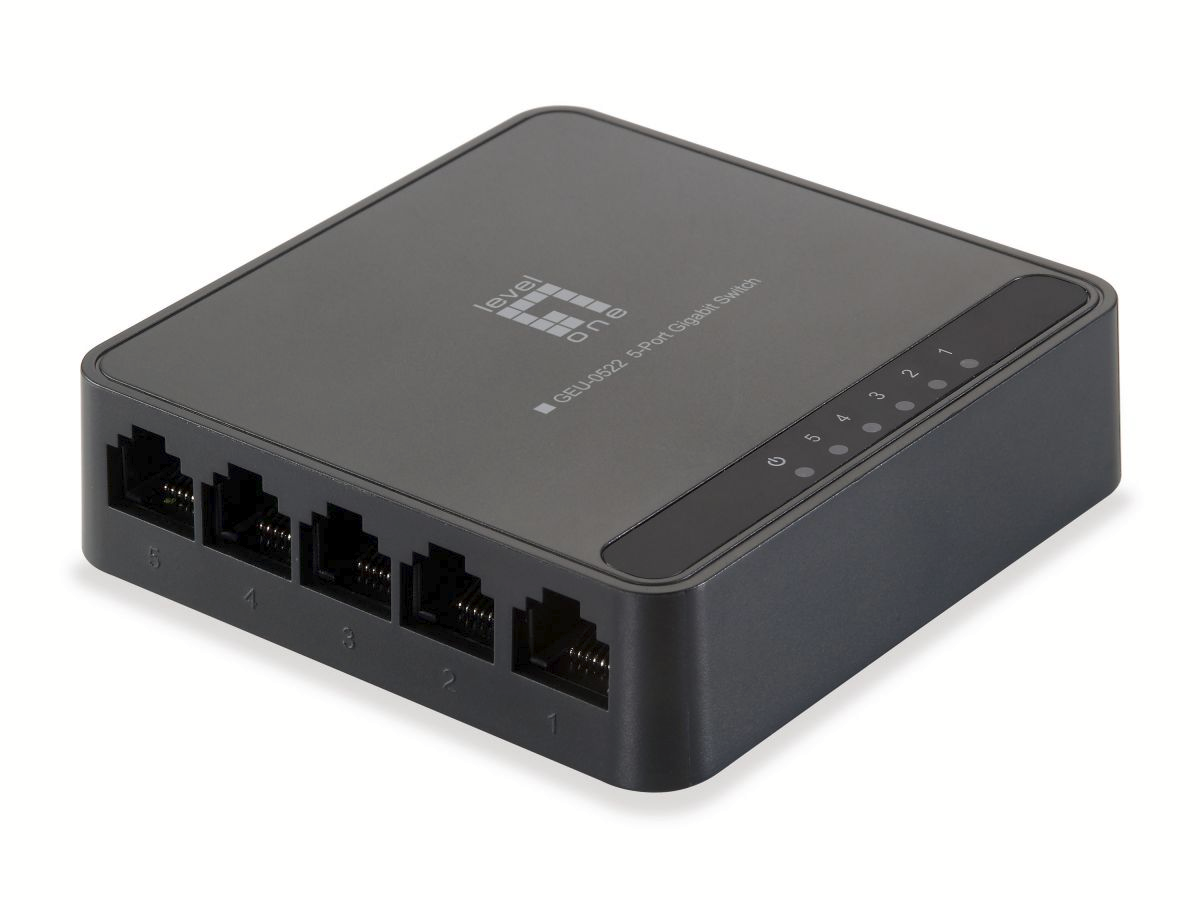 A LevelOne GEU-0522 egy vezetékes sebességű, nem blokkoló hálózati eszköz, amely 5 portos 10/100/1000Mbps Ethernet-kapcsolatot biztosít. Minden port támogatja az automatikus átvitelt és az automatikus MDI/MDIX érzékelést, így nincs szükség crossover kábelekre vagy Uplink portokra. Mindegyik port általános hálózati portként, illetve útválasztóhoz, kiszolgálóhoz, hubhoz vagy más hálózati kapcsolóhoz csatlakozó portként használható.