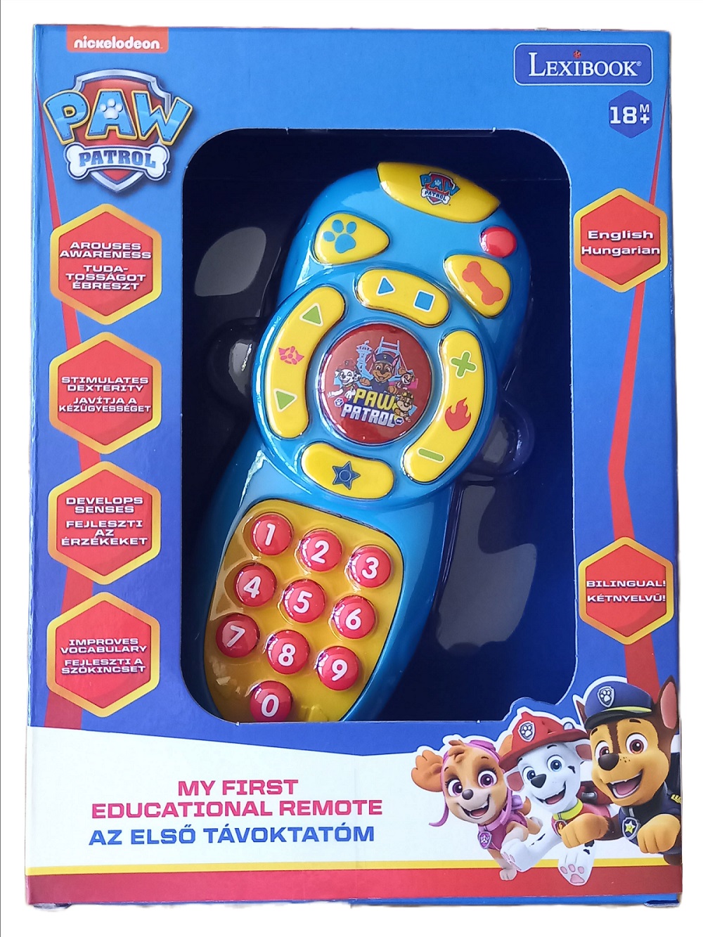 A Lexibook Mancs őrjárat kétnyelvű oktató távirányító fantasztikus eszköz arra, hogy gyermeked szórakozva tanuljon és fejlessze szókincsét. Ez az aranyos és interaktív játék segít a magyar és angol nyelv megismerésében, miközben a Mancs őrjárat karakterei kísérik a tanulási folyamatot.