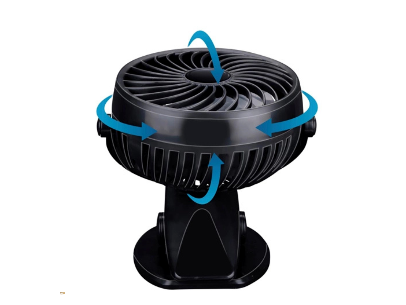 - 360 fokban forgatható: A ventilátor szabadon állítható minden irányba, így mindig optimálisan beállítható a légáramlás.