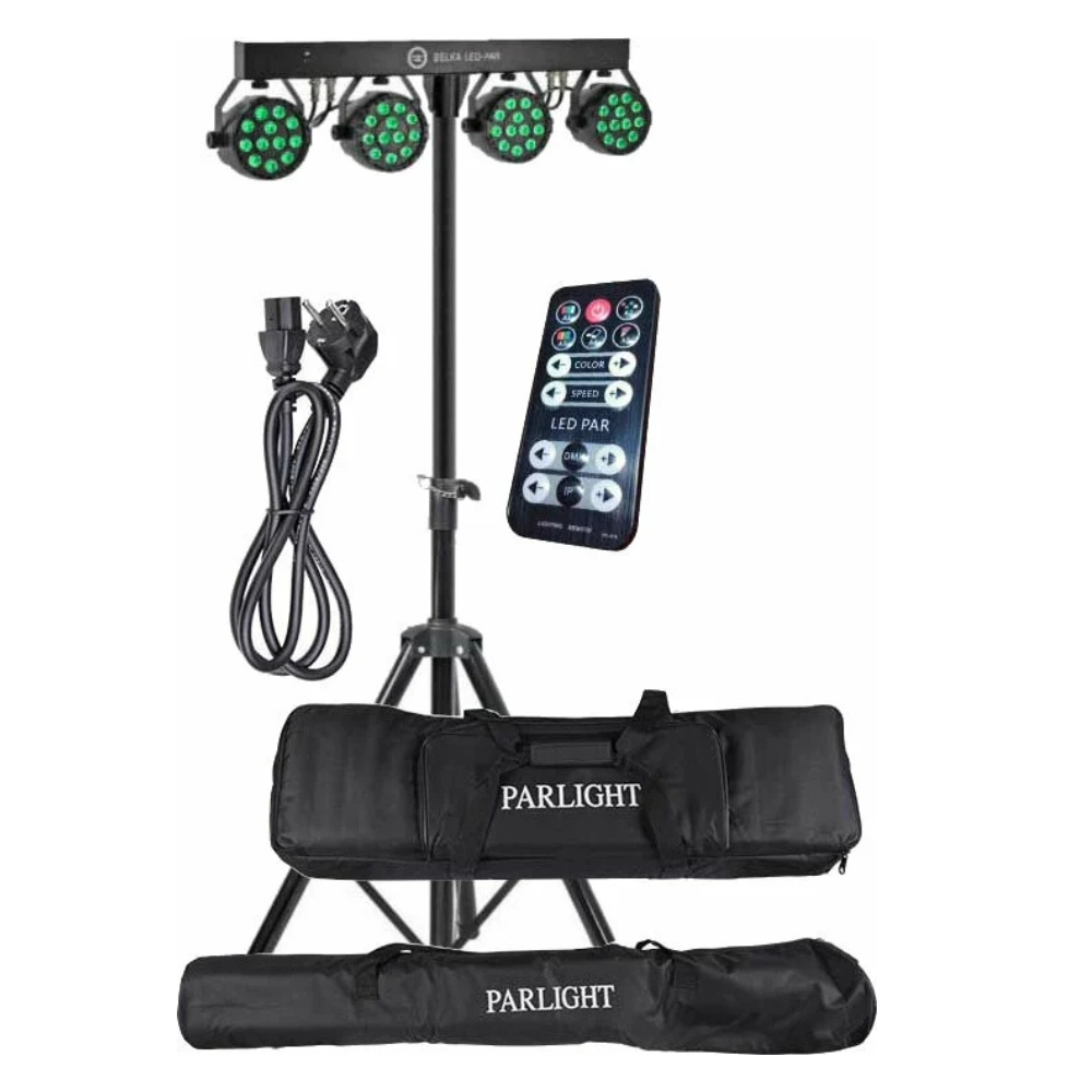A Light4Me Belka LED PAR világítókészlet komplett, azonnal használatra kész megoldás kis és közepes méretű színpadok, bankett-termek, rendezvények, DJ-szettek és zenekari fellépések látványos megvilágításához. A szett négy kompakt PAR reflektort, háromlábú állványt, távirányítót, rögzítőszalagot és praktikus hordtáskát tartalmaz, így egyetlen csomaggal megoldható a teljes alapvilágítás.