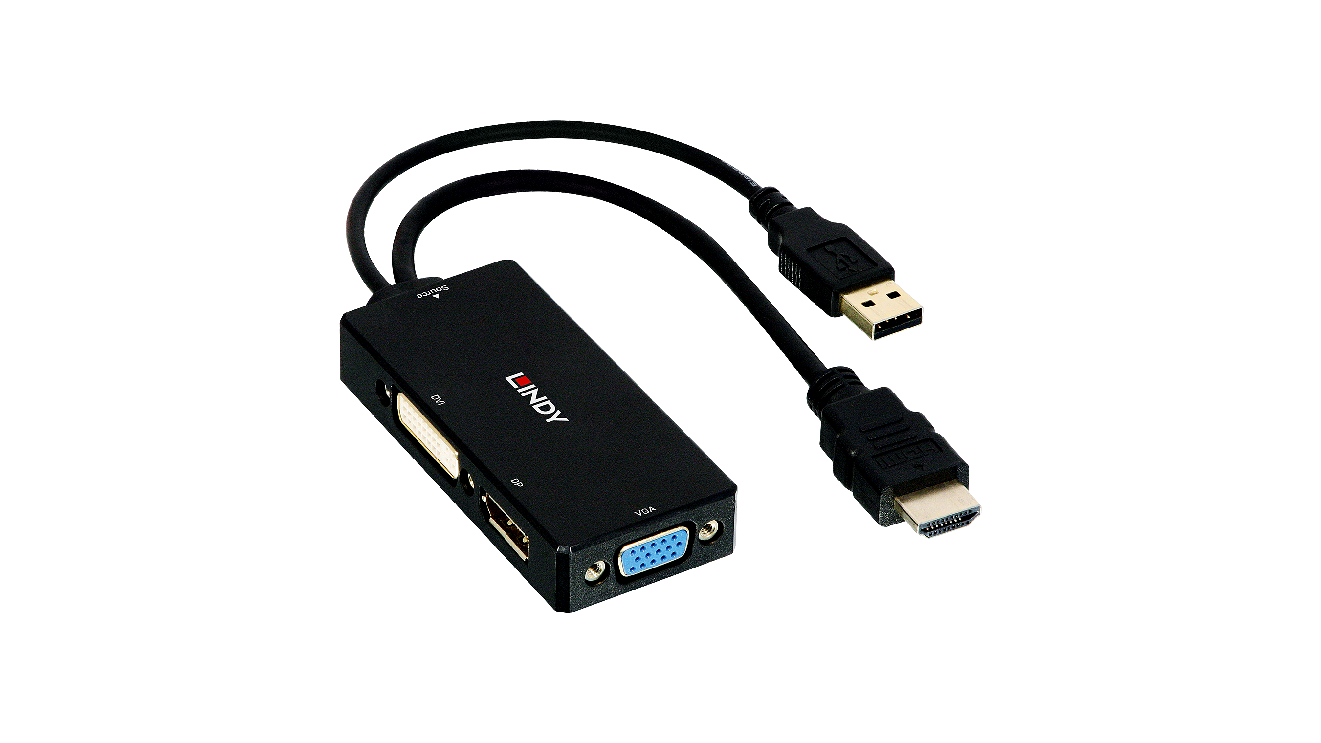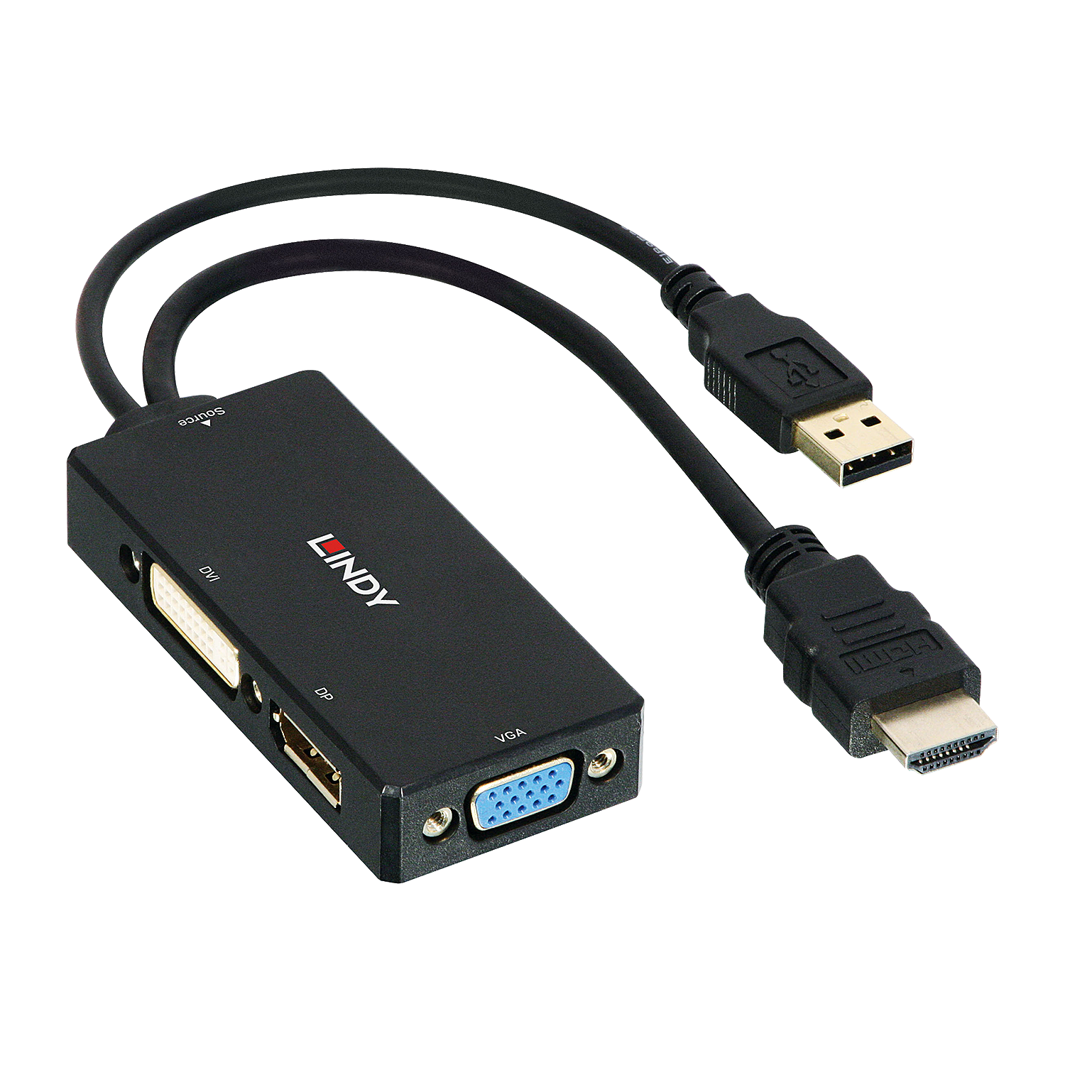 Lindy 38182 HDMI apa - DisplayPort anya/DVI anya/VGA anya Konverter Fekete