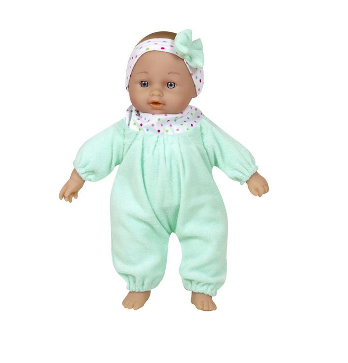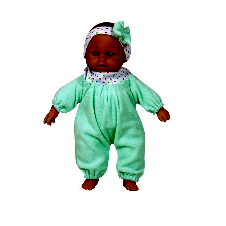 A kislányok átélhetik, milyen érzés lehet anyának lenni és gondoskodni egy édes kisbabáról. A puha testű, türkiz ruhás kislány babát ölelgethetik, szeretgethetik, sőt, akár vele is alhatnak. A baba mérete: 28 cm.