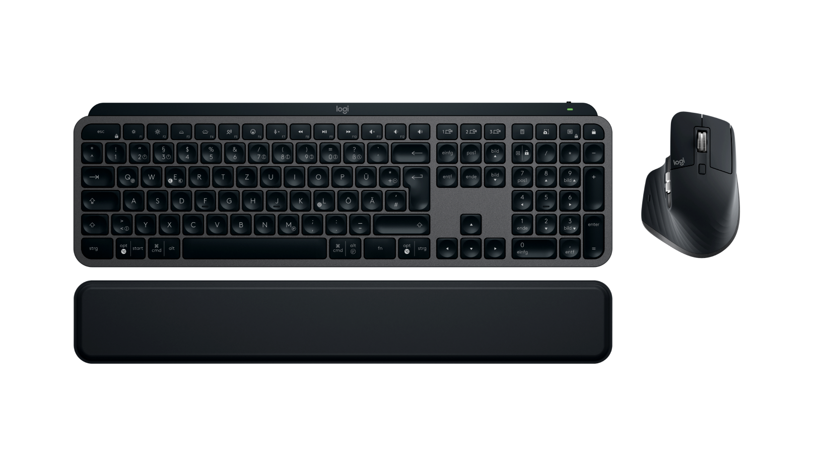 A billentyűzet stabil és lapos kialakítású, az egér pedig úgy igazodik a kezéhez, hogy elősegítse a jobb csuklótartást. A beépített kéztámasz ösztönzi a természetes tartást az egész napos kényelem érdekében.