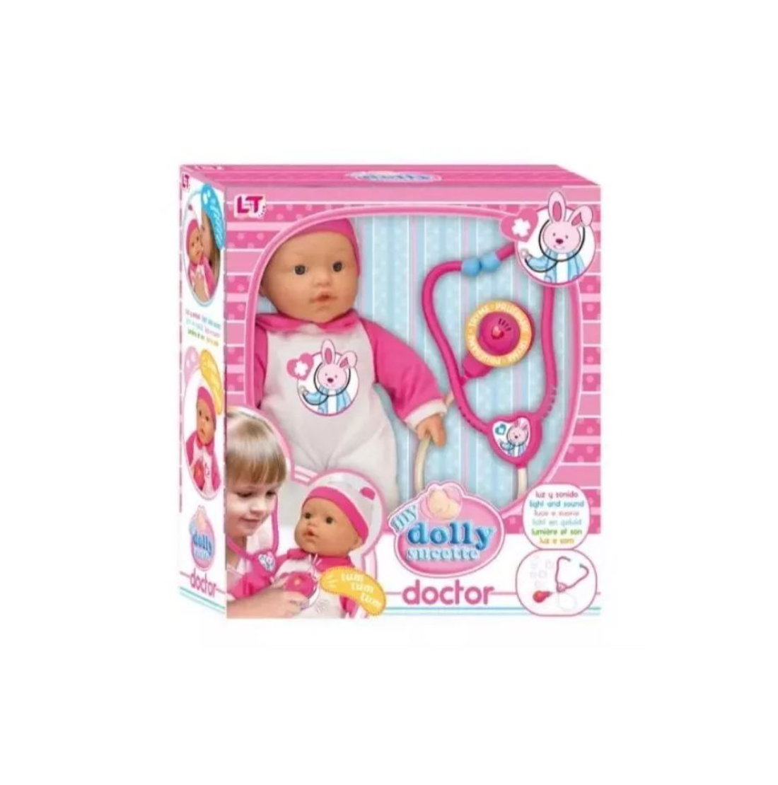 Ez a bájos baba rózsaszín-fehér ruhába és sapkába van öltöztetve, amely alvásra és játékra is tökéletes társat kínál a gyerekeknek. Puha teste miatt a gyerekek kényelmesen maguk mellett tarthatják akár alvás közben is. A csomagba egy világító és hangot adó sztetoszkóp is tartozik, amivel a kis orvosok alaposan megvizsgálhatják kedvenc babájukat.