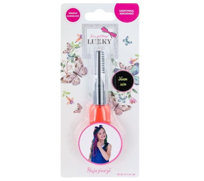 Tündöklő színes hajak a Lukky hajszínezőkkel! Használata biztonságos, így a gyerekek is bátran kipróbálhatják. A hajsmink vízbázisú, samponnal könnyen lemosható. Legyen gyerekzsúr, születésnap, farsang vagy szilveszter, a Lukky hajszínező tökéletes választás!