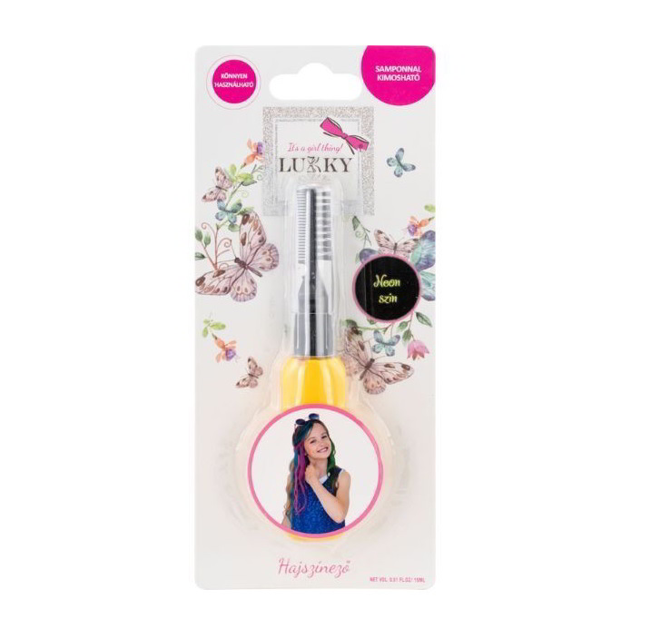 Tündöklő színes hajak a Lukky hajszínezőkkel! Használata biztonságos, így a gyerekek is bátran kipróbálhatják. A hajsmink vízbázisú, samponnal könnyen lemosható. Legyen gyerekzsúr, születésnap, farsang vagy szilveszter, a Lukky hajszínező tökéletes választás!