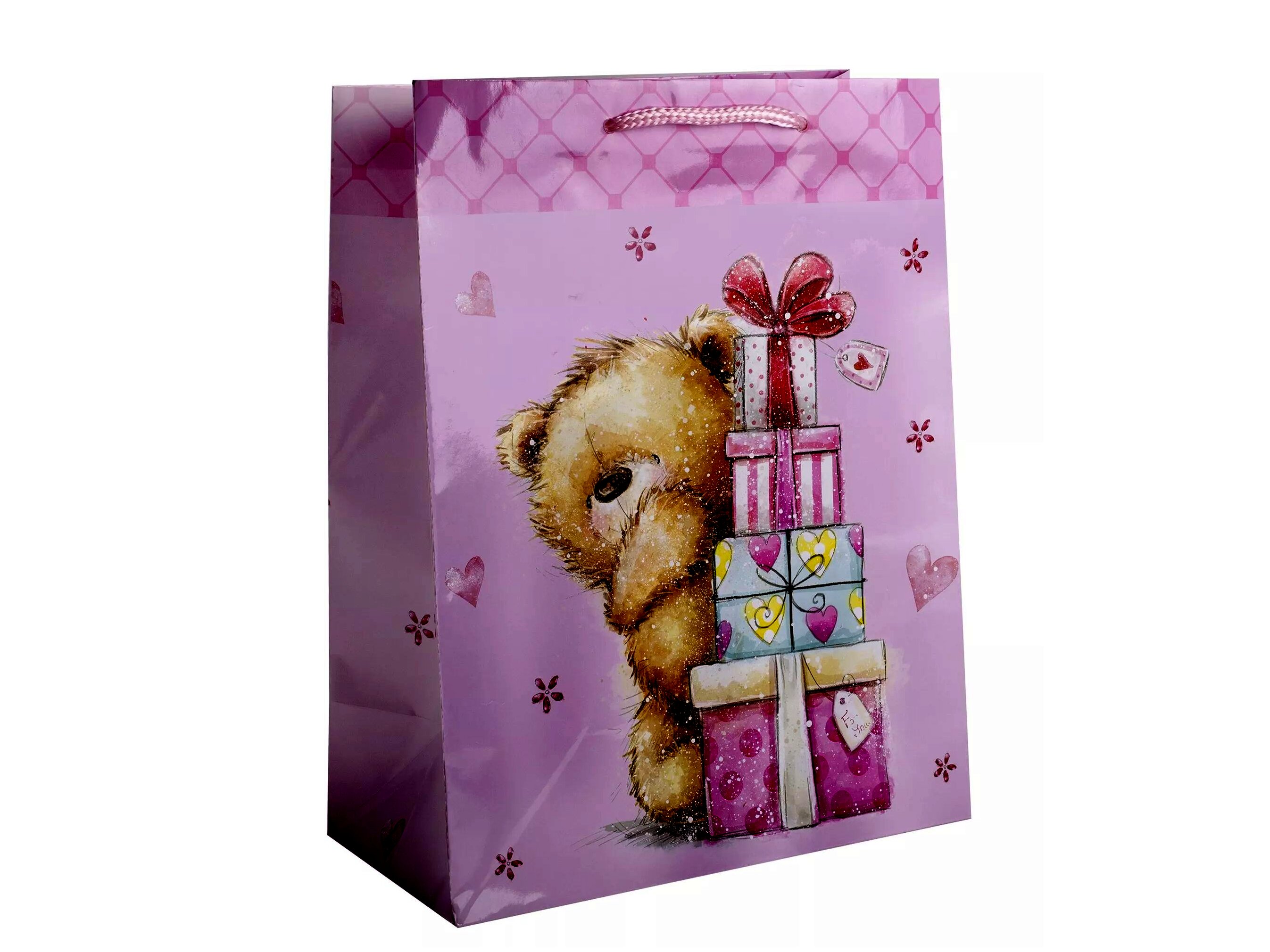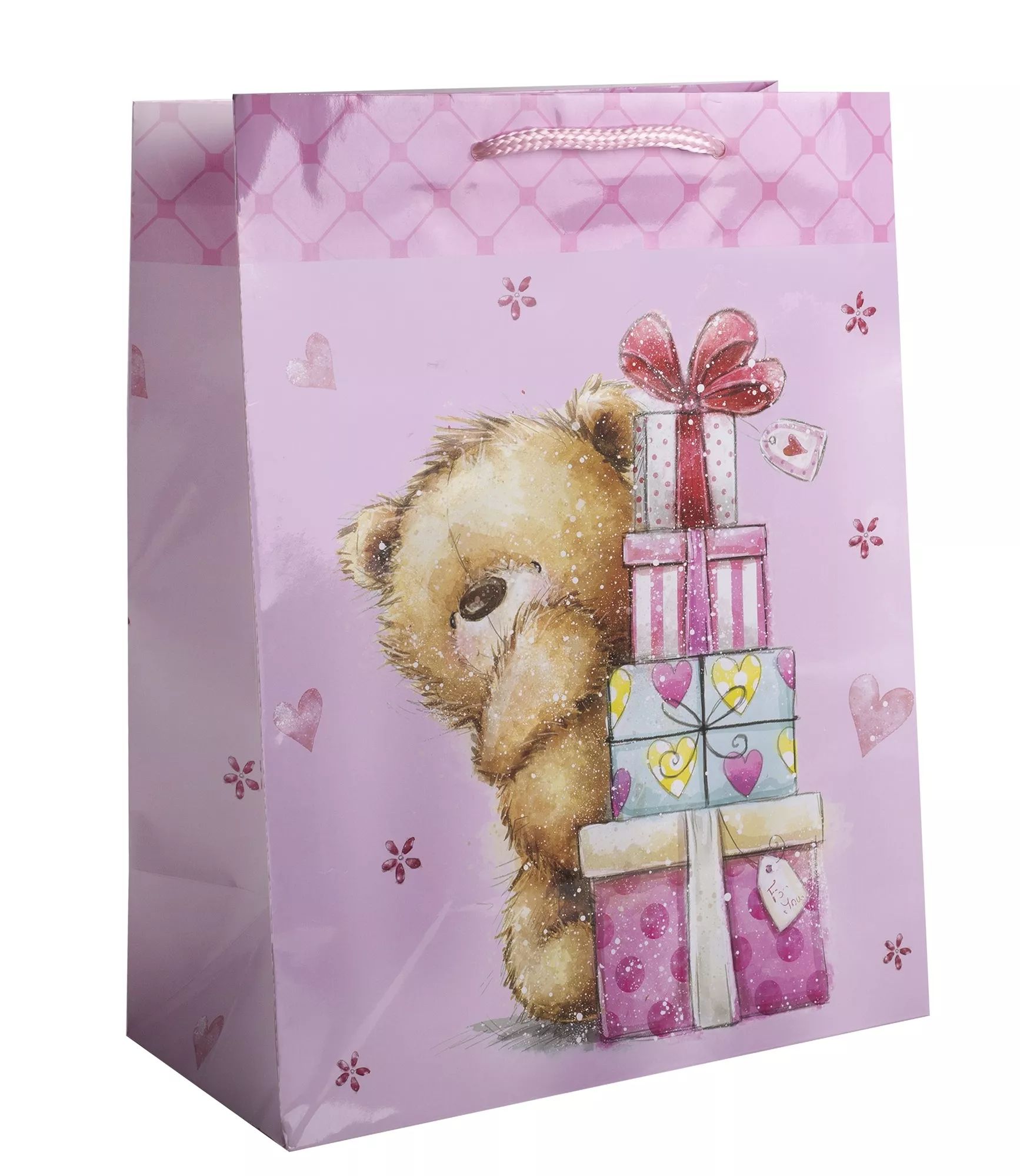 Örömet szerezni még sosem volt ilyen egyszerű! Ez az aranyos macit ábrázoló ajándékzacskó garantáltan feldobja a szülinapi köszöntőt. A rózsaszín és mintás dizájn nemcsak aranyos, de praktikus is, hiszen szalagfüllel könnyen hordozható és többször újrahasználható.