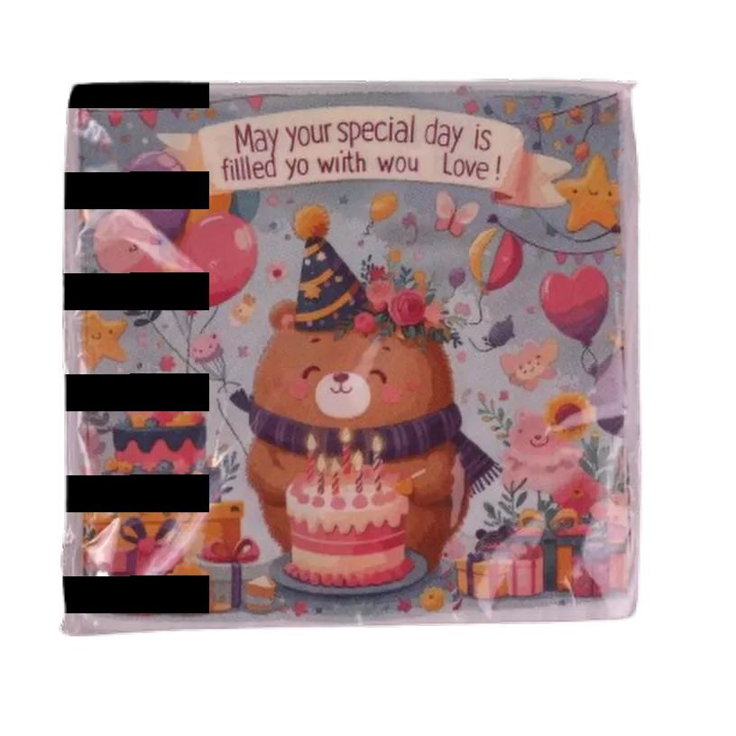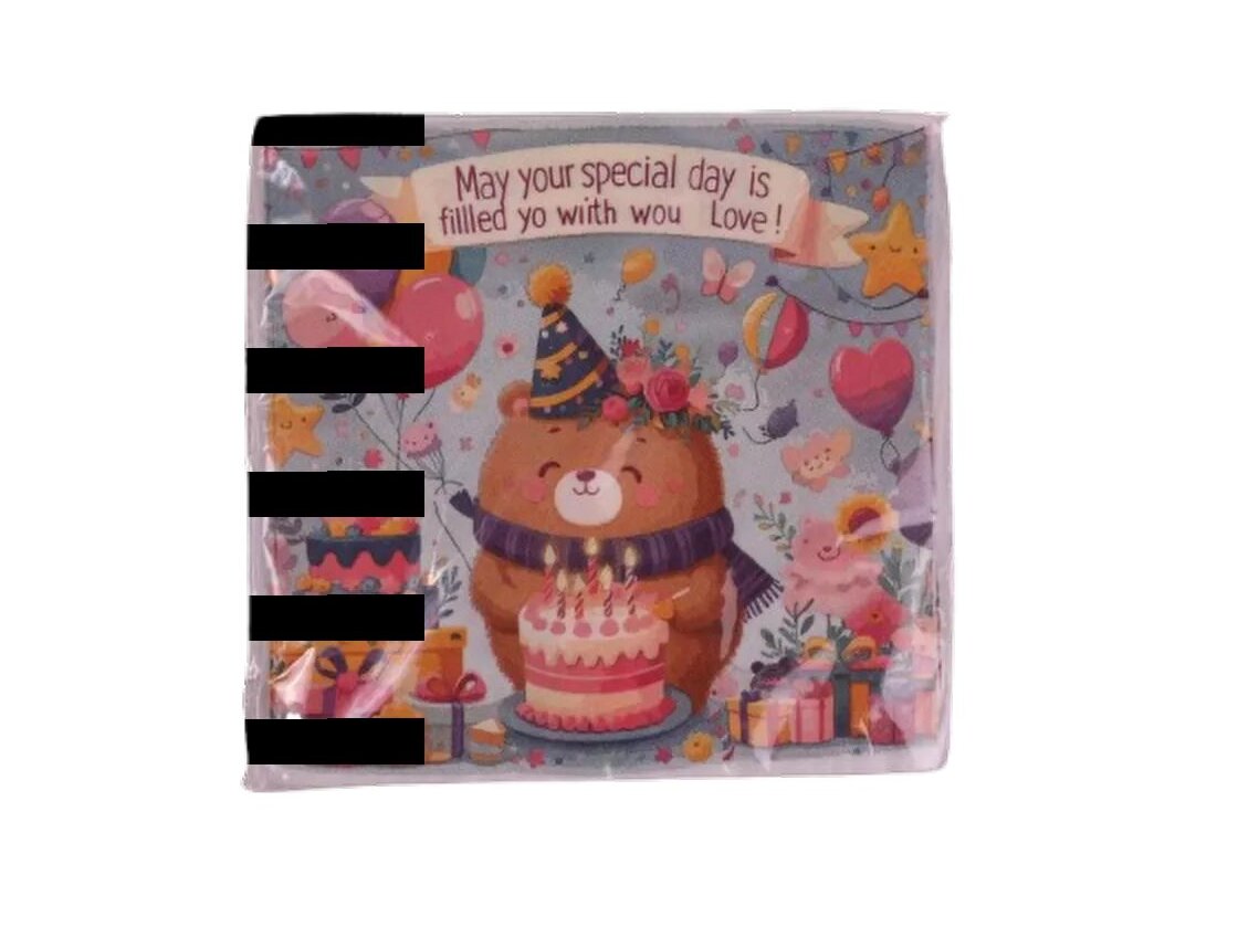 - Elegáns maci mintás dizájn: Ez a szalvéta különlegesen bájos megjelenést kölcsönöz a születésnapi asztalnak.