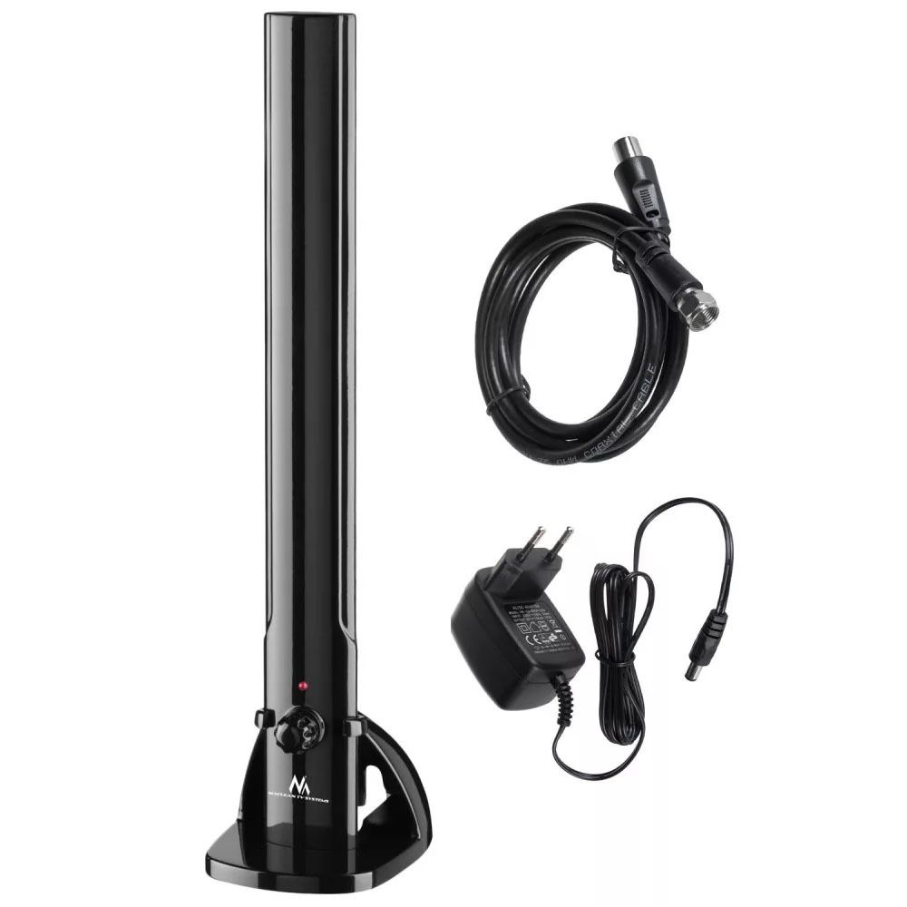 A Maclean MCTV-930 aktív szobaantennája analóg és digitális TV- és rádióműsorok vételére egyaránt alkalmas. Kompatibilis az olyan digitális földfelszíni HDTV rendszerekkel, mint a DVB-T, DVB-T2, ISDB-T és DMB-T/H, ATSC. Alkalmas a digitális DAB rádió, valamint az analóg FM rádió vételére is. Az antenna LTE szűrővel van ellátva, amely kiküszöböli a mobilhálózatokból származó zavarokat, így interferenciamentes jelet fogad. Az antenna árnyékolt és tápegységgel is fel van szerelve. A nagy nyereségű, alacsony zajszintű erősítő jobb jel- és képminőséget biztosít. Kompakt kürt alakú kialakításának köszönhetően az antenna a rádió- és TV-jelek vételéhez a legjobb helyre helyezhető.