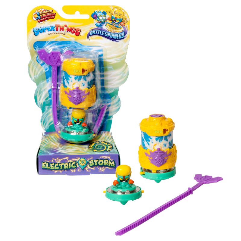 A készletek mindegyikében egy-egy pörgettyű található, amelyen egy SuperThing csücsül. A játék használata egyszerű: csak be kell dugni, majd kihúzni a műanyag indítóbotocskát, és máris pörögni-forogni fognak a hősies (vagy épp szupergonosz) tárgyak. Vajon ki marad majd „talpon" tovább? Ebben a csomagban Electric Storm kapott helyet.