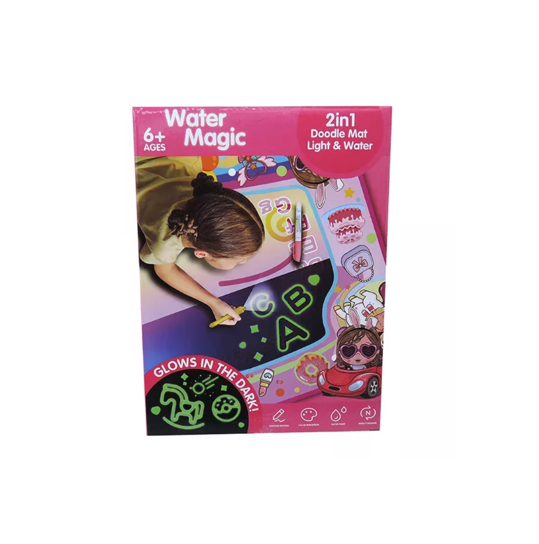 A Magic Toys varázslatos, sötétben világító maszatmentes szőnyeg egyedülálló lehetőséget kínál a kis művészek számára. A vízzel tölthető speciális toll segítségével a gyerekek különleges módon alkothatnak a szőnyegen, ahol az előre megrajzolt minták víz hatására előbukkannak.
