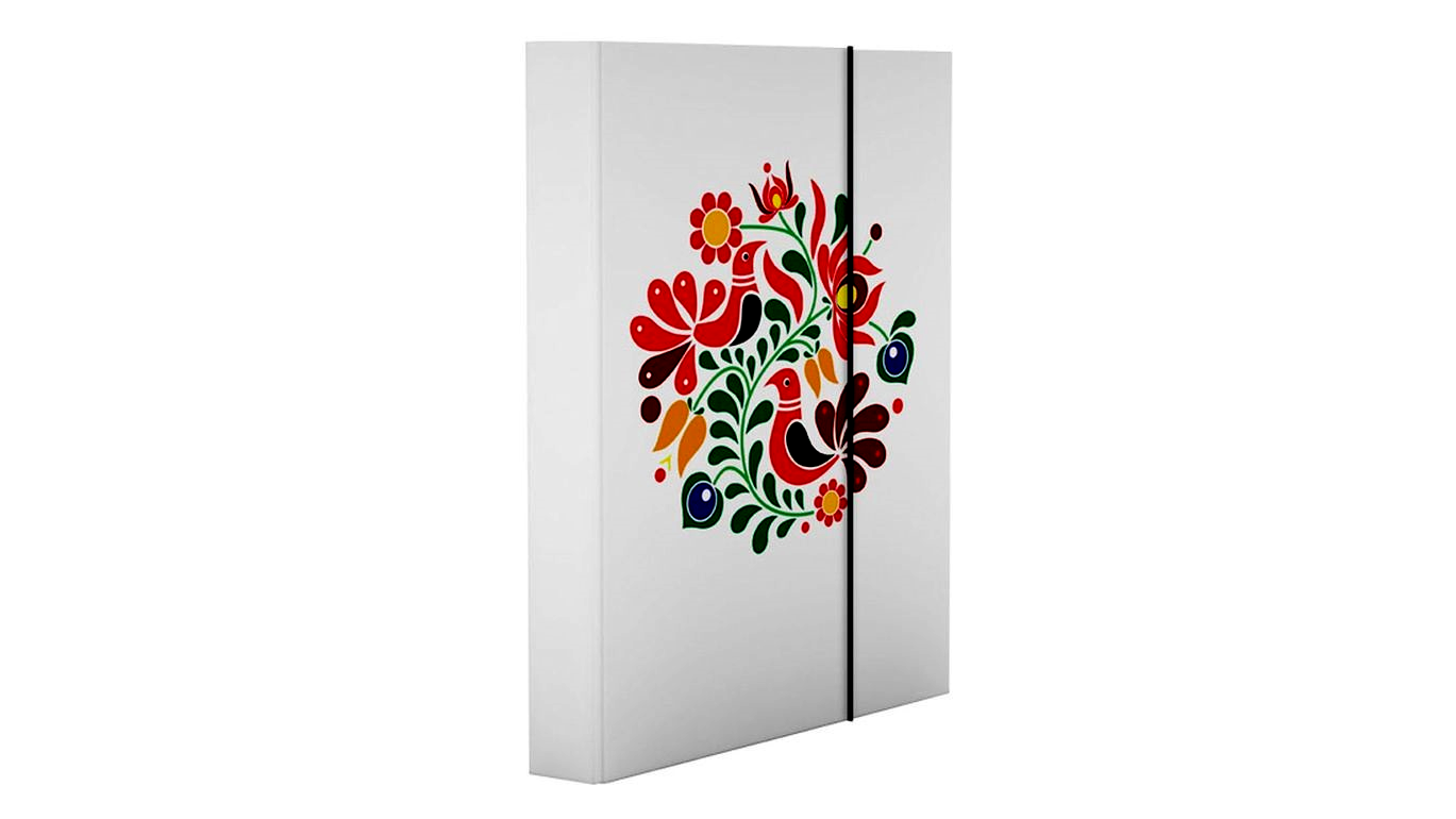 A magyar népi motívumvilág – legyen szó kalocsai, matyó vagy egyéb népi díszítőelemekről – nemcsak ruházaton és lakberendezési tárgyakon mutat jól, hanem az iskolai és irodai kiegészítőkön is különleges hatást kelt. Az ilyen díszítésű füzetbox: