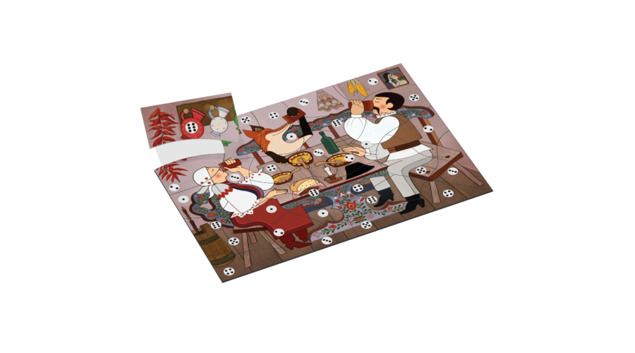 A Magyar Népmesék játékcsalád legújabb tagja a Kirakós társasjáték. Ezt a játékot nyugodtan adhatjuk óvodások és kisiskolások kezébe, egy gyönyörű képet kell kirakjanak az összevágott darabokból, amely a kultikus rajzfilmsorozat A szállást kérő róka című epizódjából való.