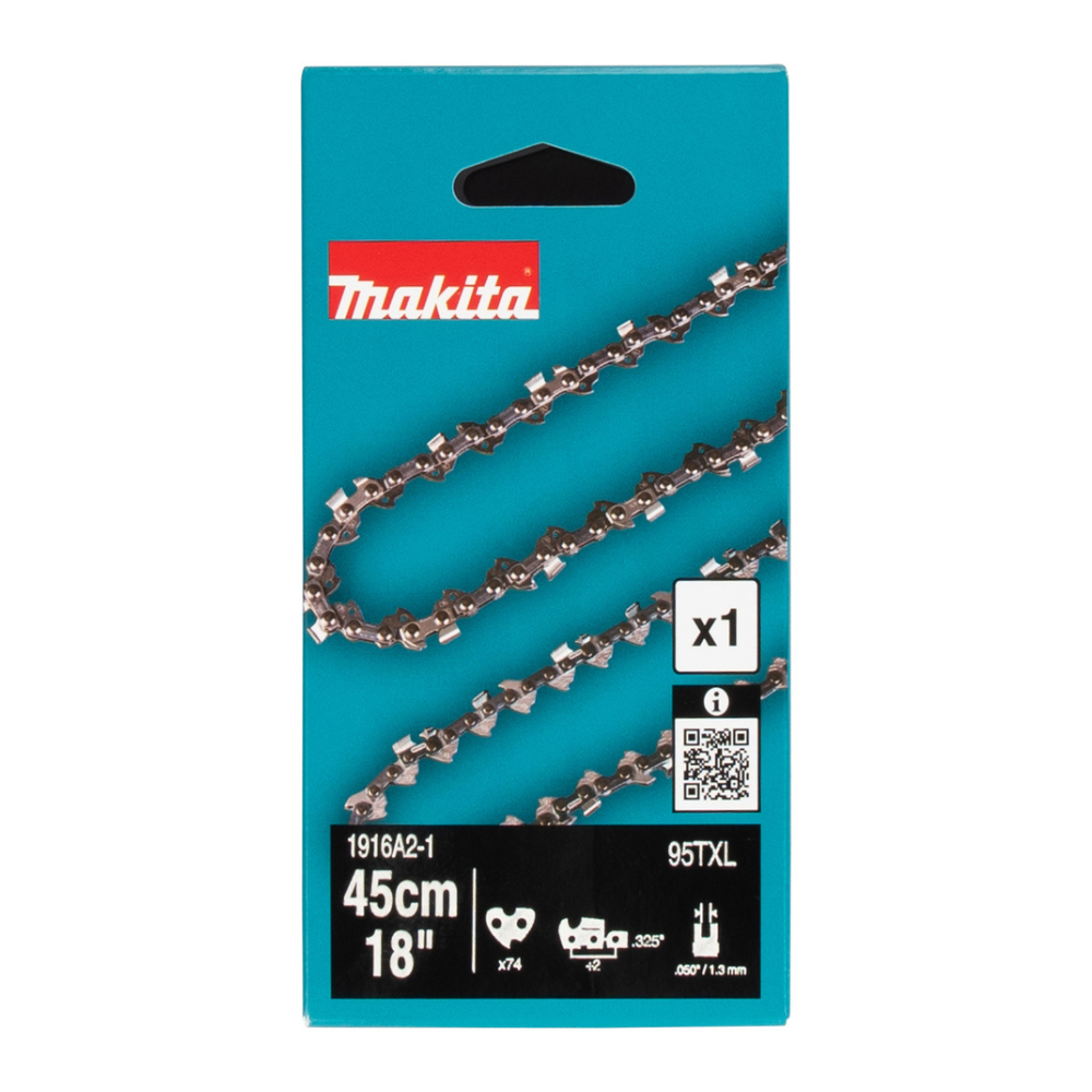 A Makita 1916A2-1 fűrészlánc ideális választás mindazoknak, akik megbízható, hosszú élettartamú és pontos vágást biztosító láncot keresnek 45 cm-es vezetőlemezhez. Kifejezetten korszerű motorfűrészekhez tervezett, alacsony rezgésű és hatékony lánc, amely alkalmas tűzifa darabolásra, ácsmunkákhoz, kertfenntartáshoz és könnyebb fakitermelési feladatokhoz is.
