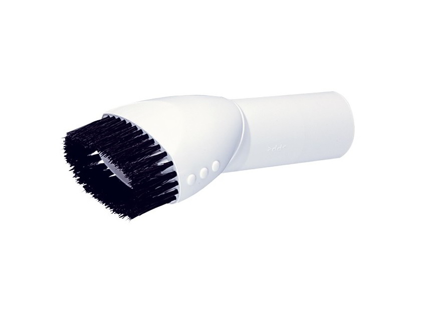 A forgatható fejjel és puha sörtékkel ellátott kerek kefe ideális az érzékeny felületekhez.