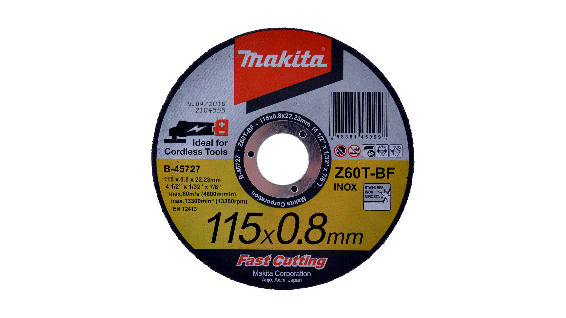 Makita B-45727 vágótárcsát vékony lemezekhez, acélkötelekhez, vékonyfalú profilokhoz és csövekhez rozsdamentes acélból és színesfémekből, valamint kompozit anyagokhoz (üveggel erősített műanyagok) ajánljuk. A 0,8 mm vastagságú extra finom vágótárcsa evolution AS 60W a megfelelő választás vékonyfalú profilok és csövek, vékony lemezek és kötelek vágásához. Az extra finom vágótárcsát a gyors és sima vágás jellemzi alacsony érintkezési nyomás mellett. Nemcsak a kiemelkedő vágási sebesség jellemzi, hanem a korlátozott szikrázással járó, alacsony kopásszámú vágás, valamint a kiváló élettartam is.
