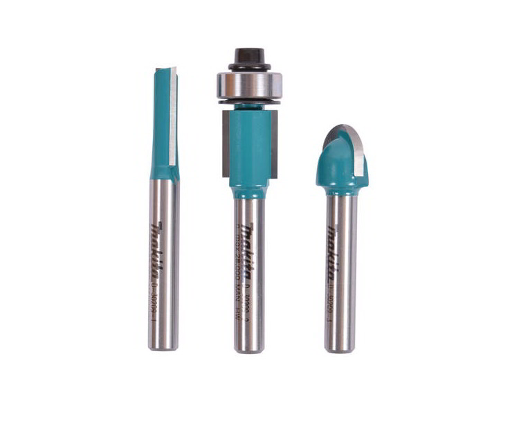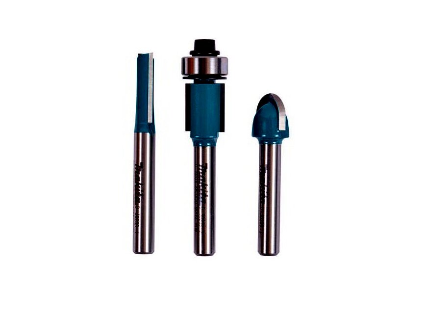 A Makita három darabból álló D-30209 maró készlete különféle formájú fák marására alkalmas. A marószár átmérője 6 mm. Alkalmasak a DRT50Z vezeték nélküli többfunkciós marógéphez.