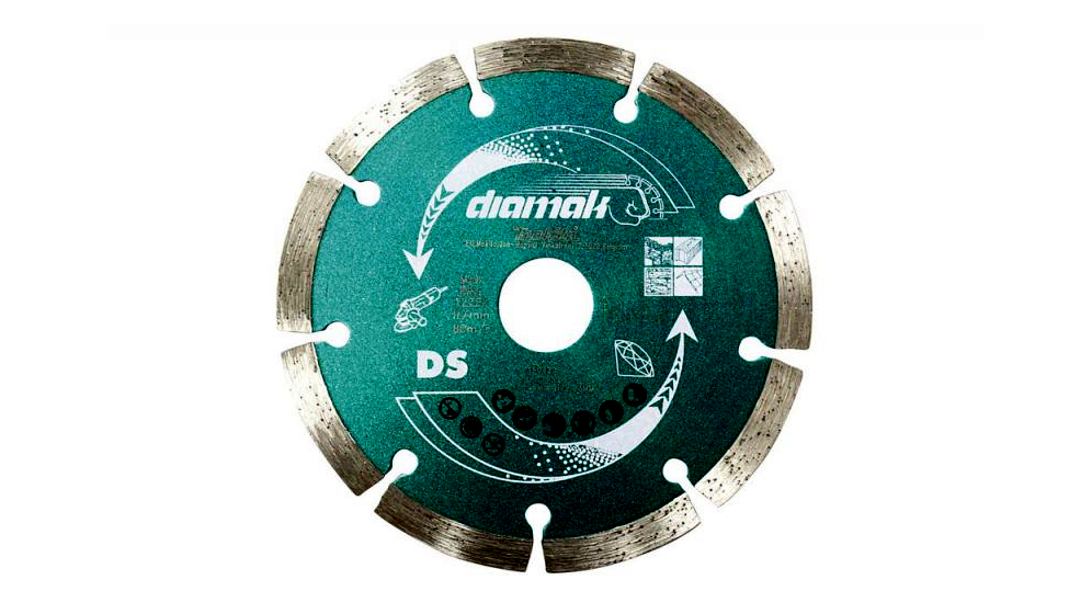 A Makita (Diamak D-61139) gyémánt vágókorong falhoz, betonhoz, lágyabb téglához, márványhoz, cement cseréphez és általános építkezési anyaghoz készült, és sarokcsiszolóhoz alkalmas.