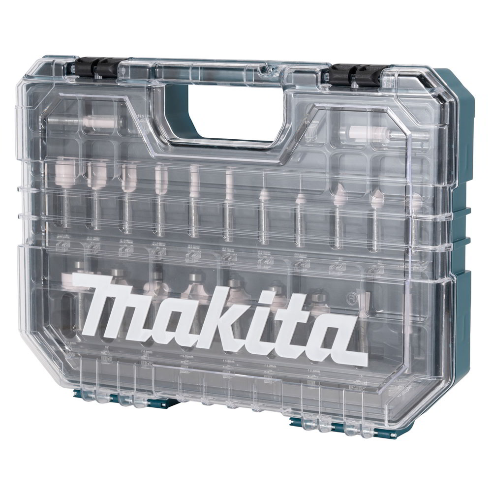 A Makita D-74778 22 darabos marószerszámkészletét egy átlátszó fedéllel ellátott (kb. 250 x 345 mm) szállítótáskában szállítjuk. A marófejek 8 mm-es szárátmérővel rendelkeznek, és alkalmasak különböző formák fába történő marásához, a bútorgyárban, asztalosok és barkácsolók számára. A D-74778 marómarókészlet nyolc horonymarót, egy fazettás marót, két V-hornyos marót, egy fogazott és marómarót és egy fúrómarót vezetéssel, tolócsapágy nélkül, valamint négy lekerekítő marót, egy fazettás marót, egy fazettás marót, egy fazettás marót, két süllyesztőmarót és egy fúrómarót tolócsapággyal tartalmaz.
