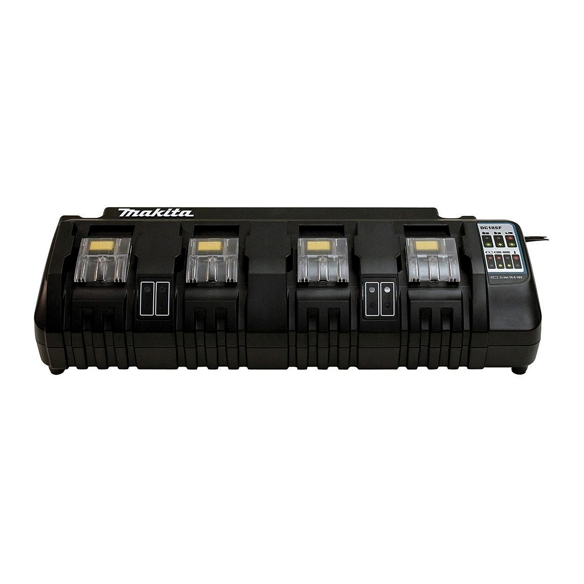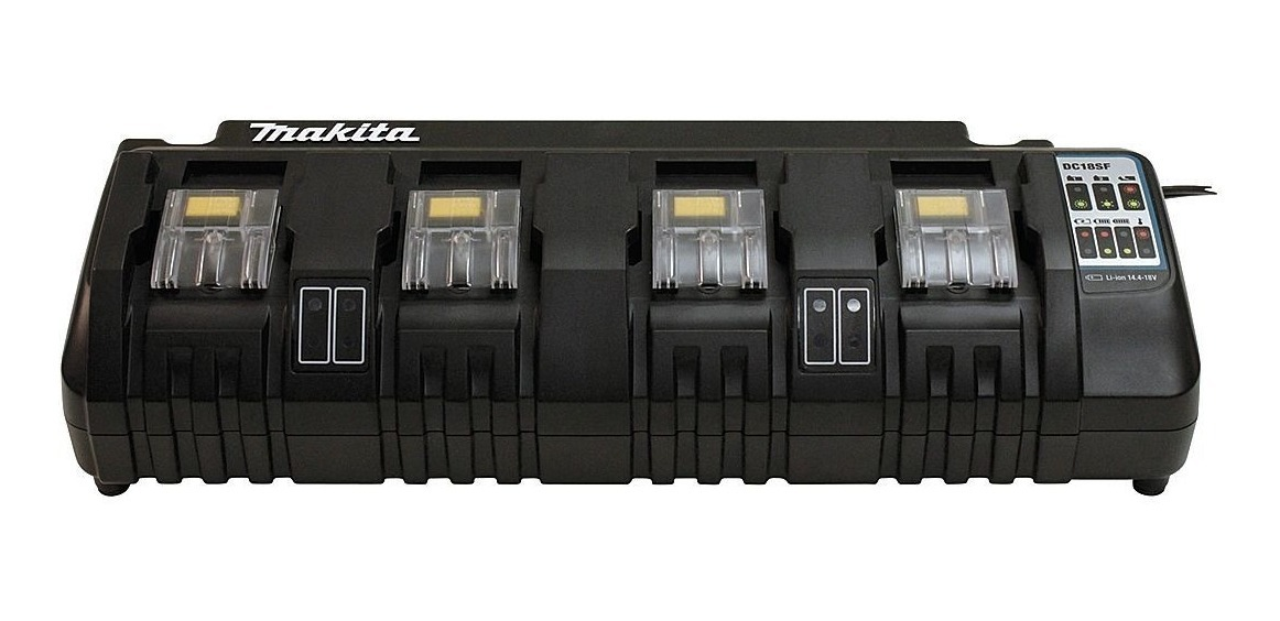 Köszöntse a hatékonyságot minden munkahelyen a Makita DC18SF 4-portos akkumulátortöltővel, amely kiemelkedik a megújuló teljesítmény és megbízhatóság terén. Tökéletes választás mindazok számára, akik több Makita 14,4 V vagy 18 V Li-ion akkumulátort is használnak különböző elektromos szerszámaikhoz.