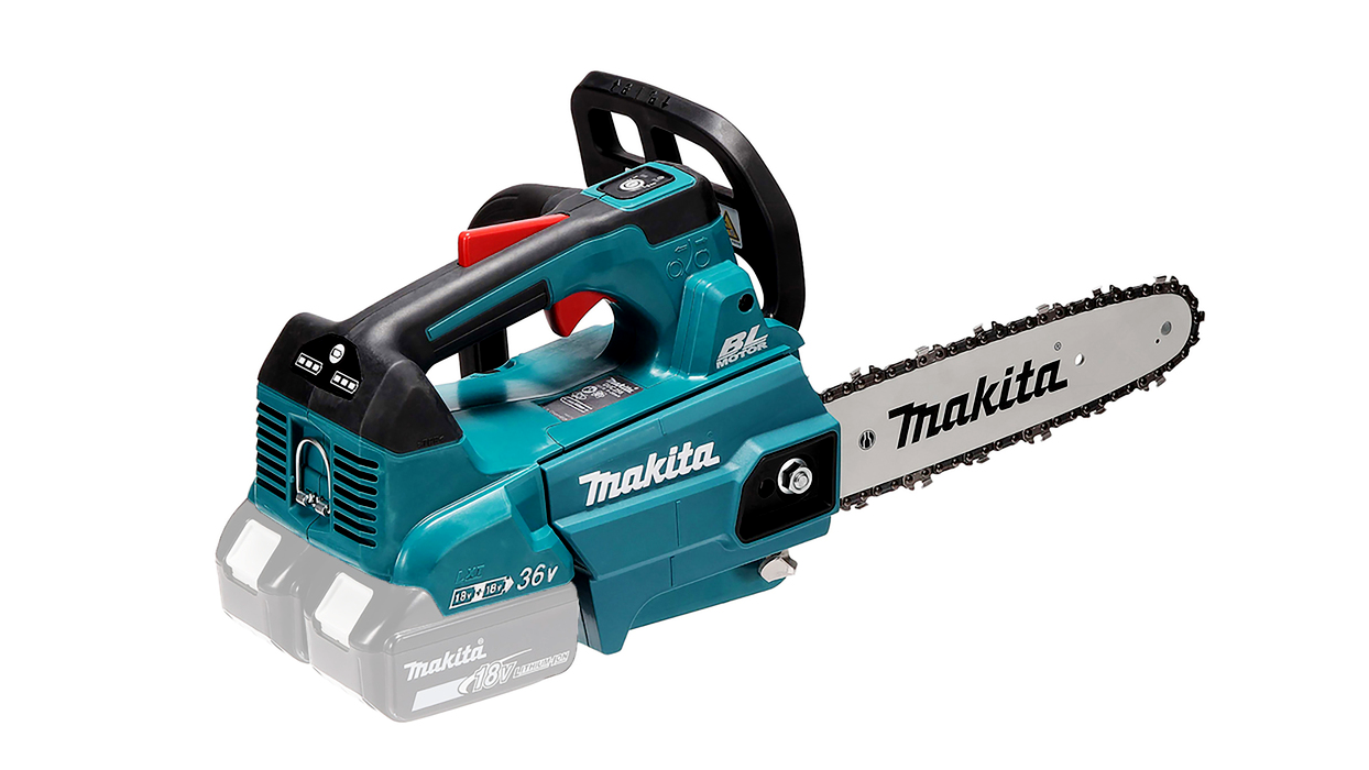 - Egy hatékony akkumulátoros fűrész kefe nélküli motorral és 20 m/s láncsebességgel