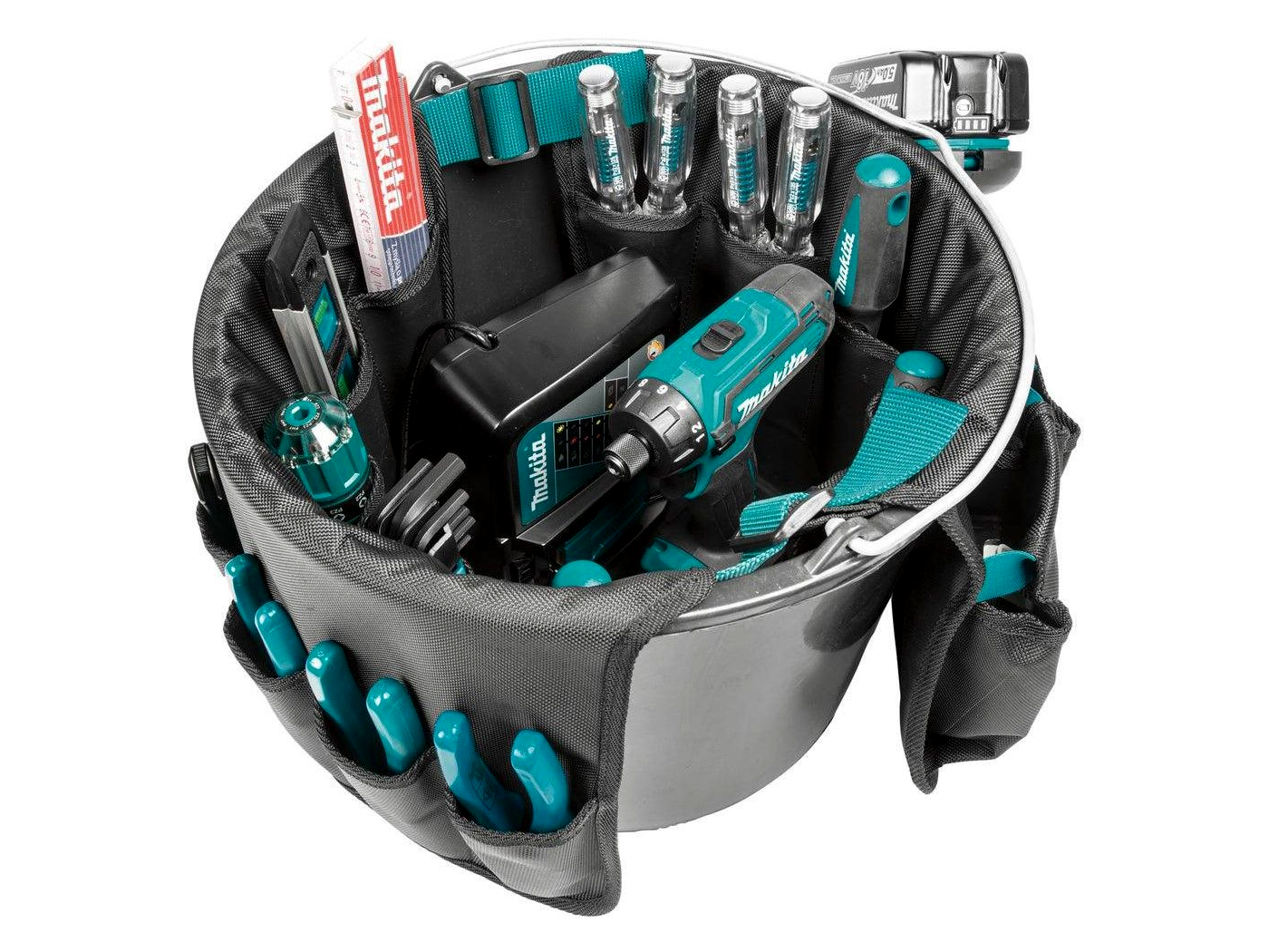 Univerzális méret a legtöbb vödör méretéhez Teljesen állítható gyorskioldó csatokkal 10 belső zseb 3 elasztikus elülső zseb a nagy rugalmasságért