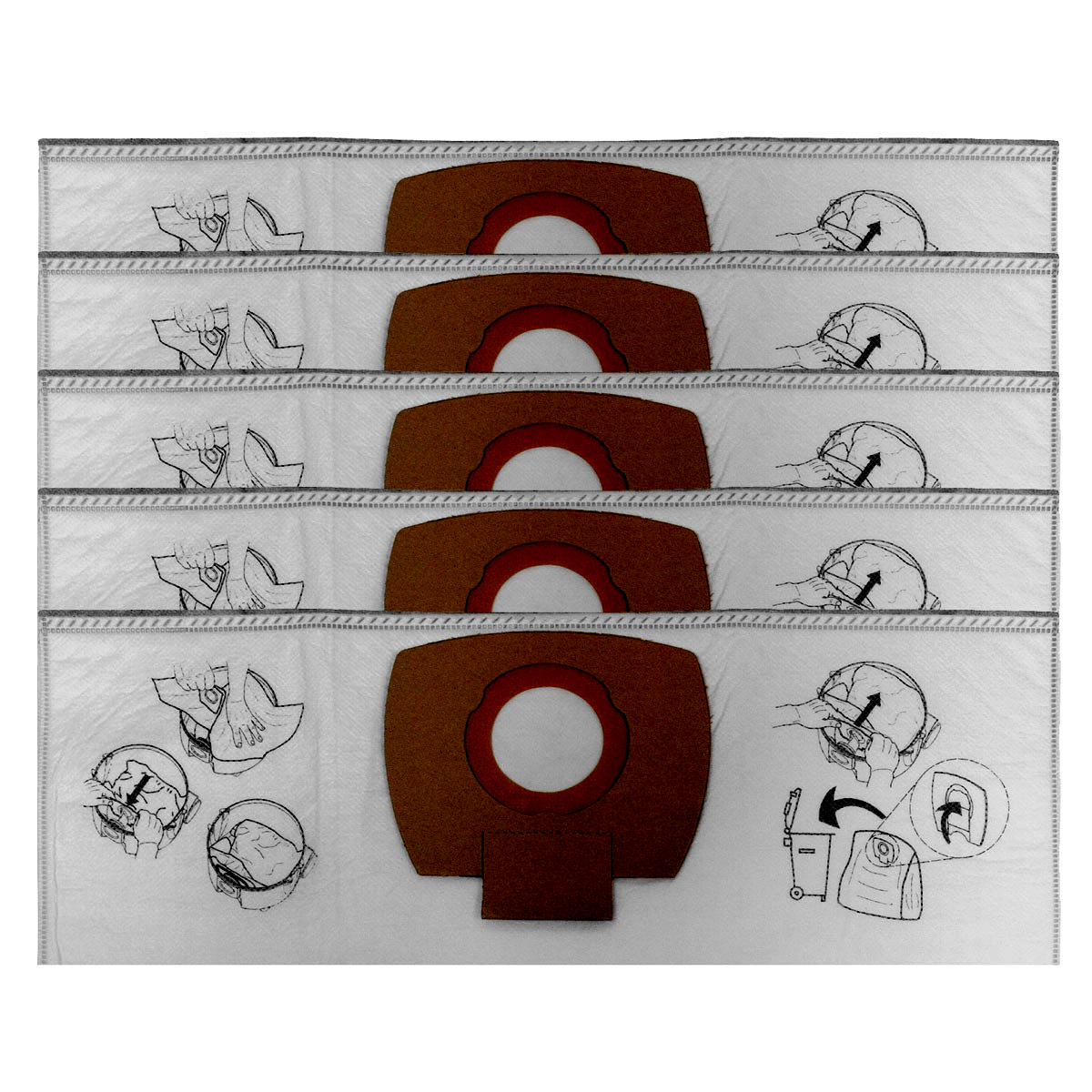 5 db nemezelt műanyag porszák MAKITA VC2010L, VC2511, VC2015L, VC3011L, 446L, VC2512L, VC3012 porszívókhoz