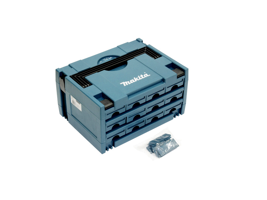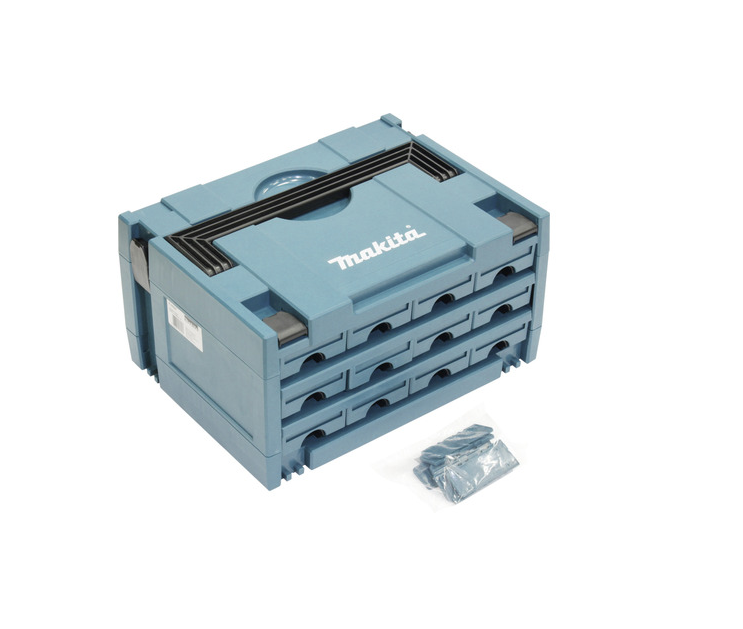 Fogyóeszközök és apró alkatrészek szállításához és biztonságos tárolásához használják. A MAKSTOR 3.12 modell 12 fiókkal rendelkezik, 3 szinten. A MAKSTOR fiókok észrevehetően és biztonságosan rögzülnek a helyükön, így nem csúsznak ki, még akkor sem, ha rögös a szállítás. Nagy nyomógombbal nyitják. A kihúzható ütköző megakadályozza, hogy a fiókok akaratlanul kidőljenek; eltávolításukhoz felfelé kell dönteni őket. A tökéletes rend érdekében a 12 fiókot fel lehet osztani a kívülről szállított és címkézett elválasztók segítségével. A fiókos elválasztókat és az egyes fiókok címkecsíkjait tartalmazza. A MAKSTOR sorozat kompatibilis a meglévő MAKPAC rendszer esetekkel.