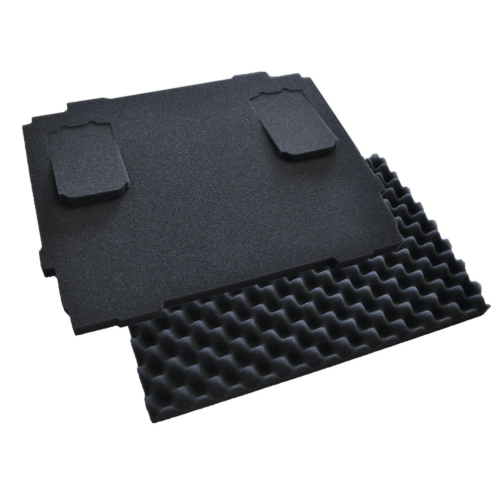 A takaróban lévő párna a padlón lévő párnával együtt jobb tartást és védelmet biztosít a gép és a kiegészítők számára. A tárolóhely optimálisan használható. A habbetét egyik oldala tapadófelülettel és 2 mélyedéssel van ellátva az LXT 18V akkumulátorokhoz. A betét csak az alacsony kofferekkel használható. A nagyobb Makpac kofferek túl magasak, s ezért az elemeket nem lehet a szivacspárnák közé „befogni” a fedél és a MakPac alja közé. Ez a biztonságos rögzítés lehetővé teszi, hogy az akkumulátorok ne mozduljanak el. A betét vastagsága 20 mm.