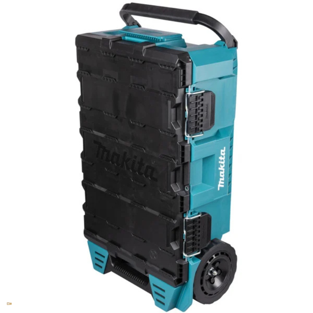 Fontosabb tulajdonságok: nagy belső tér; vízszintes kialakítás hosszú szerszámokhoz; nagy átmérőjű, terepjáró jellegű kerekek; GeckoGrip hordozófogantyú; kesztyűbarát zárak; kétirányú, levehető fedél; több rögzítési pont elválasztókhoz, tálcákhoz; egymásra rakható moduláris rendszer; tárhely szerszámoknak, tartozékoknak, akkumulátoroknak, töltőknek, apró alkatrészeknek; masszív kopolimer műanyag ház; professzionális használatra készült, Makita rendszerekhez illeszkedve.
