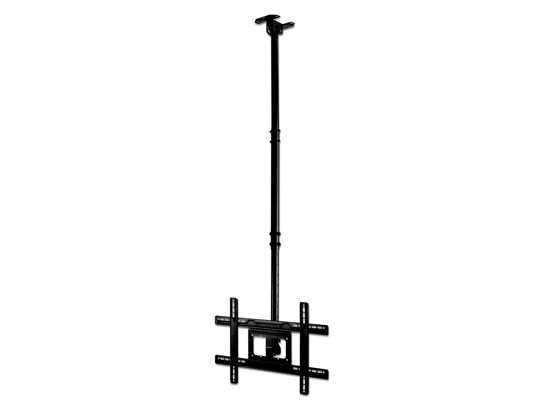 Tökéletes megoldás, ha a fali és padlón elhelyezett TV-k már nem opciók, vagy alacsony szinteken történő telepítések nem praktikusak. Ez a Manhattan mennyezeti TV tartó konzol egy 37" és 80" közötti LCD, LED vagy plazma kijelzőt képes tartani, akár 50 kg-ig. Porszórt, masszív acélszerkezete biztosítja a megbízható és biztonságos felszerelést.