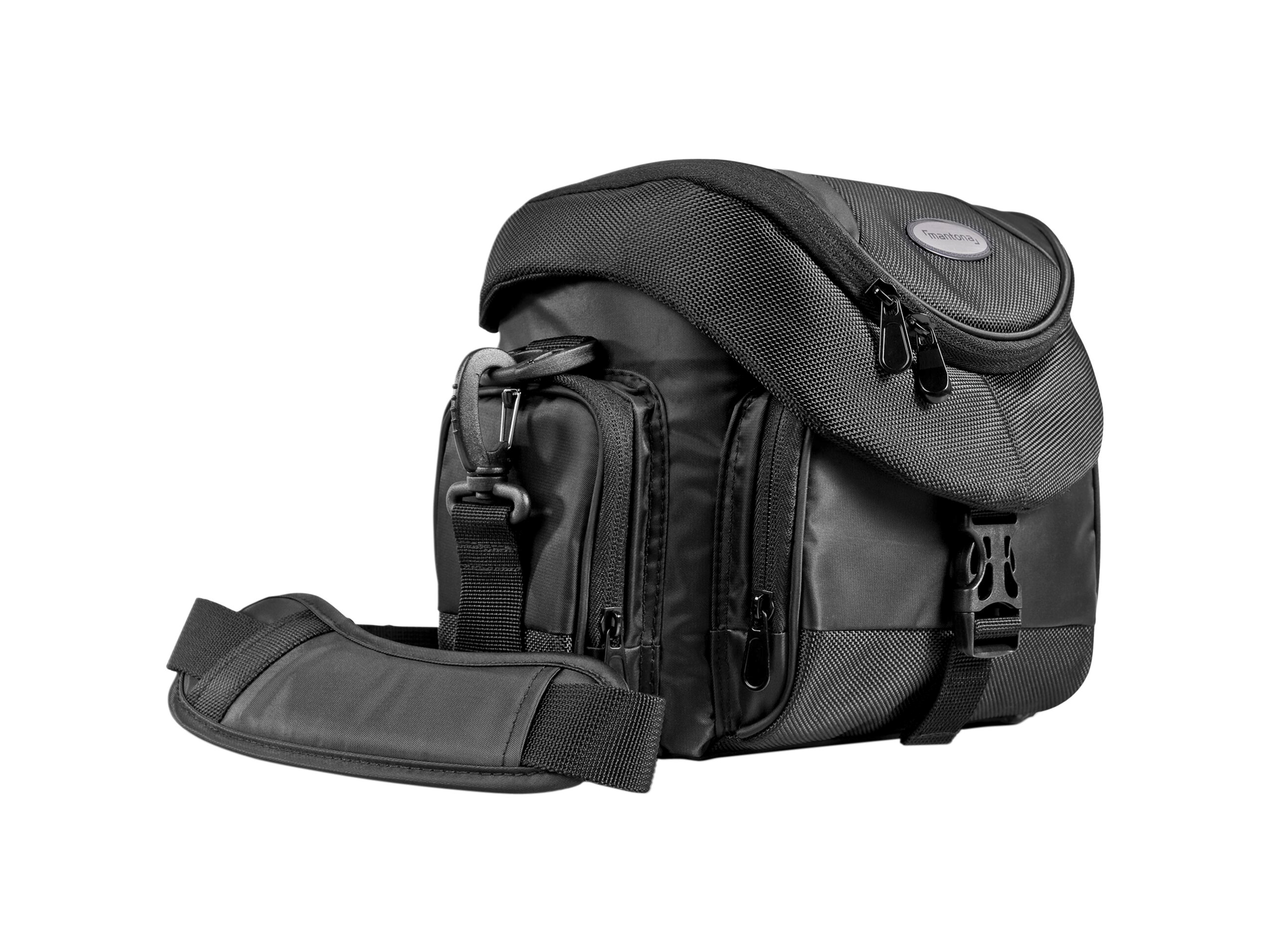 Akár kisebb fényképezőgép-tartozékokat, mint a szűrők vagy memóriakártyák, is könnyedén elhelyezhetők a számos belső rekeszben. A praktikus táskát kapcsos, csuklós fedél zárja, és ergonomikus, hosszban állítható, párnázott vállpánttal, valamint hordozó fogantyúval van ellátva. Az öv szükség esetén levehető.