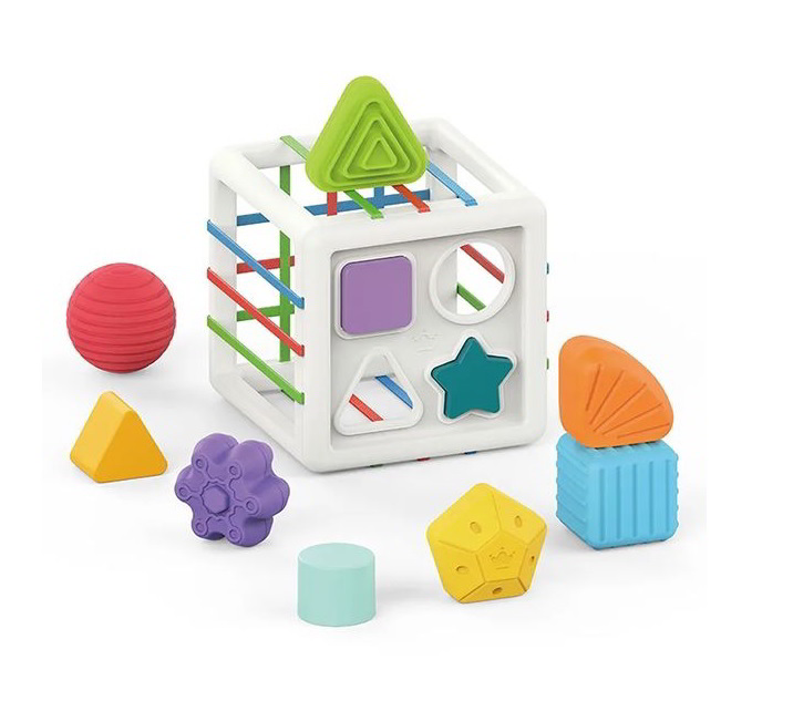 Ezzel a formaválogató kockával a kicsik játékosan ismerkedhetnek meg a formákkal és a számokkal. A kockába tökéletesen beleillenek az eltérő formájú, mintás elemek. A játék végeztével elég félrehúzni a színes gumipántokat, kiszedni a formákat és indulhat is újra.