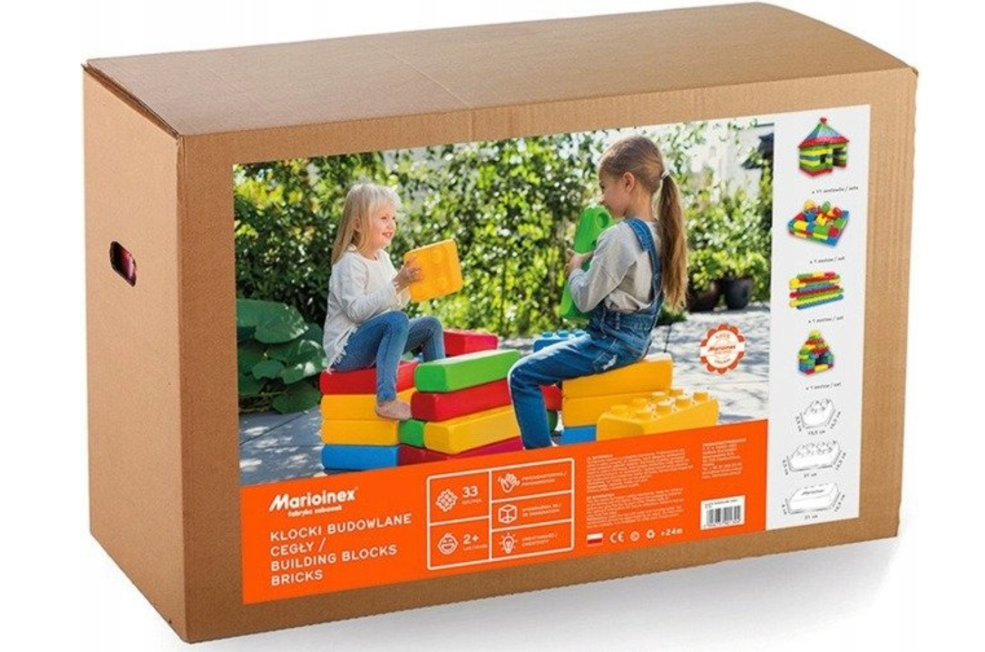 • Kiadós készlet – a csomag 33 darab nagyméretű építőkockát tartalmaz, többféle formával és elemmel, így nagyobb, stabilabb építmények is létrehozhatók.