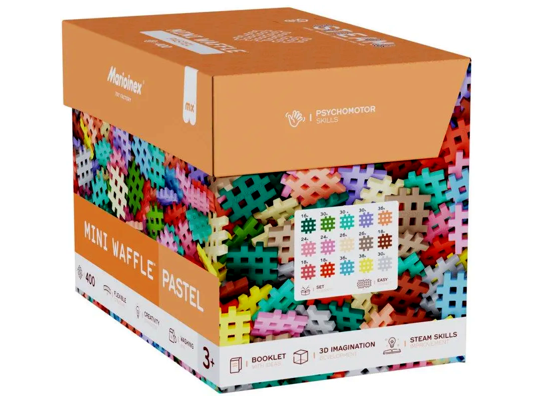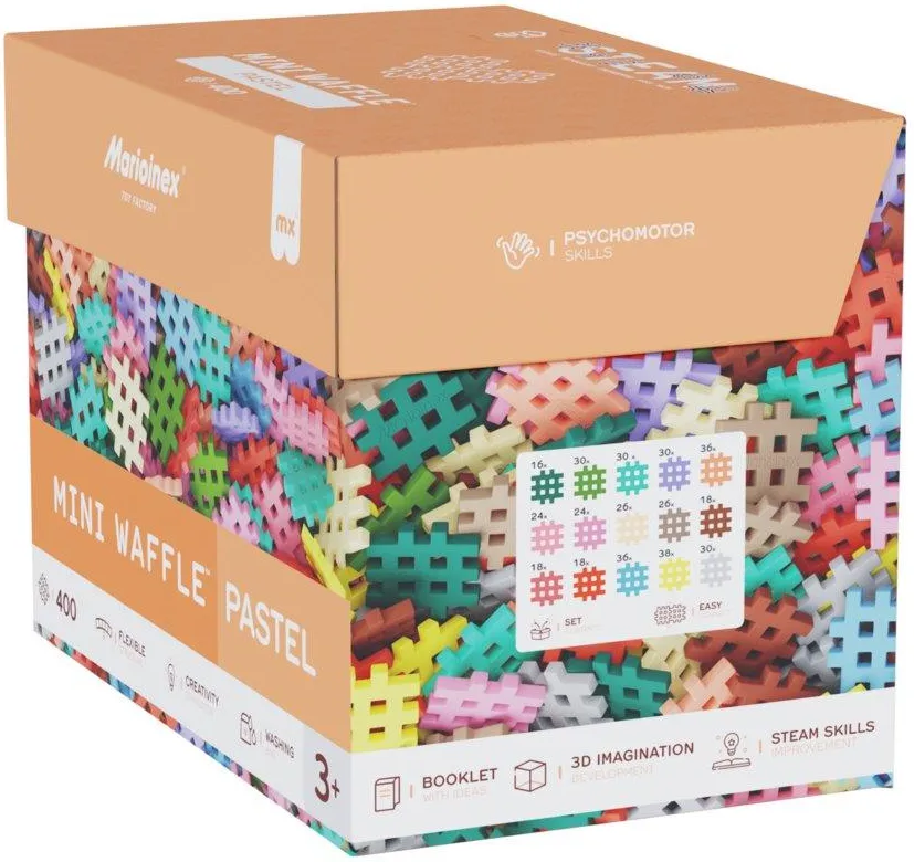 Ez a pasztell színű építőkészlet már az első pillanattól kezdve alkotásra ösztönzi a gyerekeket. A rugalmas, waffle (gofri) mintájú elemek könnyen összeilleszthetők, mégis stabil szerkezeteket eredményeznek, így a legkisebbek is sikerélménnyel építhetnek saját fantáziavilágot.
